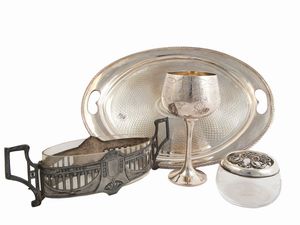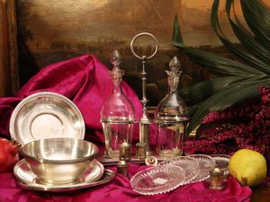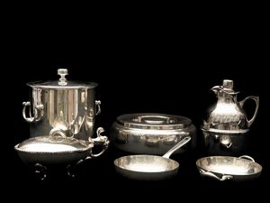h cm 22x43x22, cm 37x34, h cm 14, diam cm 30, diam cm 30,5 (4) inizio del XX secolo composto da una campana coprivivande [..]
