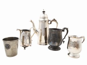diam da cm 21 a cm 30, cachepot h cm 22 (4) composto da una caffettiera, un piatto d'epoca, un piatto per torta, [..]
