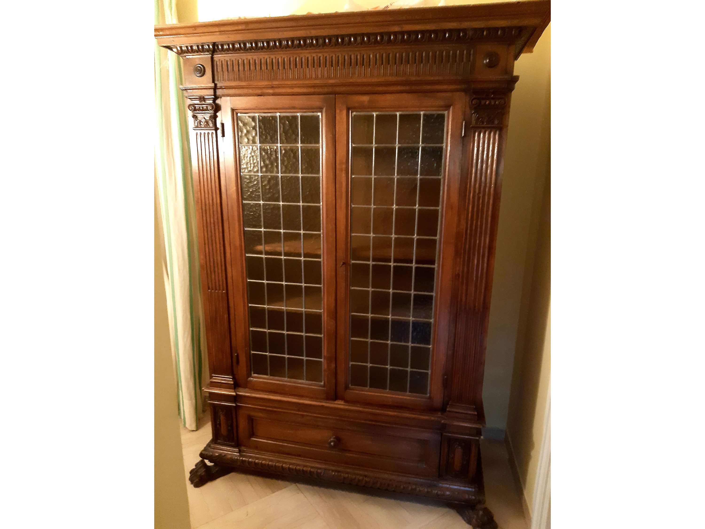 inizio del XX secolo due sportelli con vetri piombati color ocra tra lesene a colonna scanalata, un cassetto alla base, piedi ferini