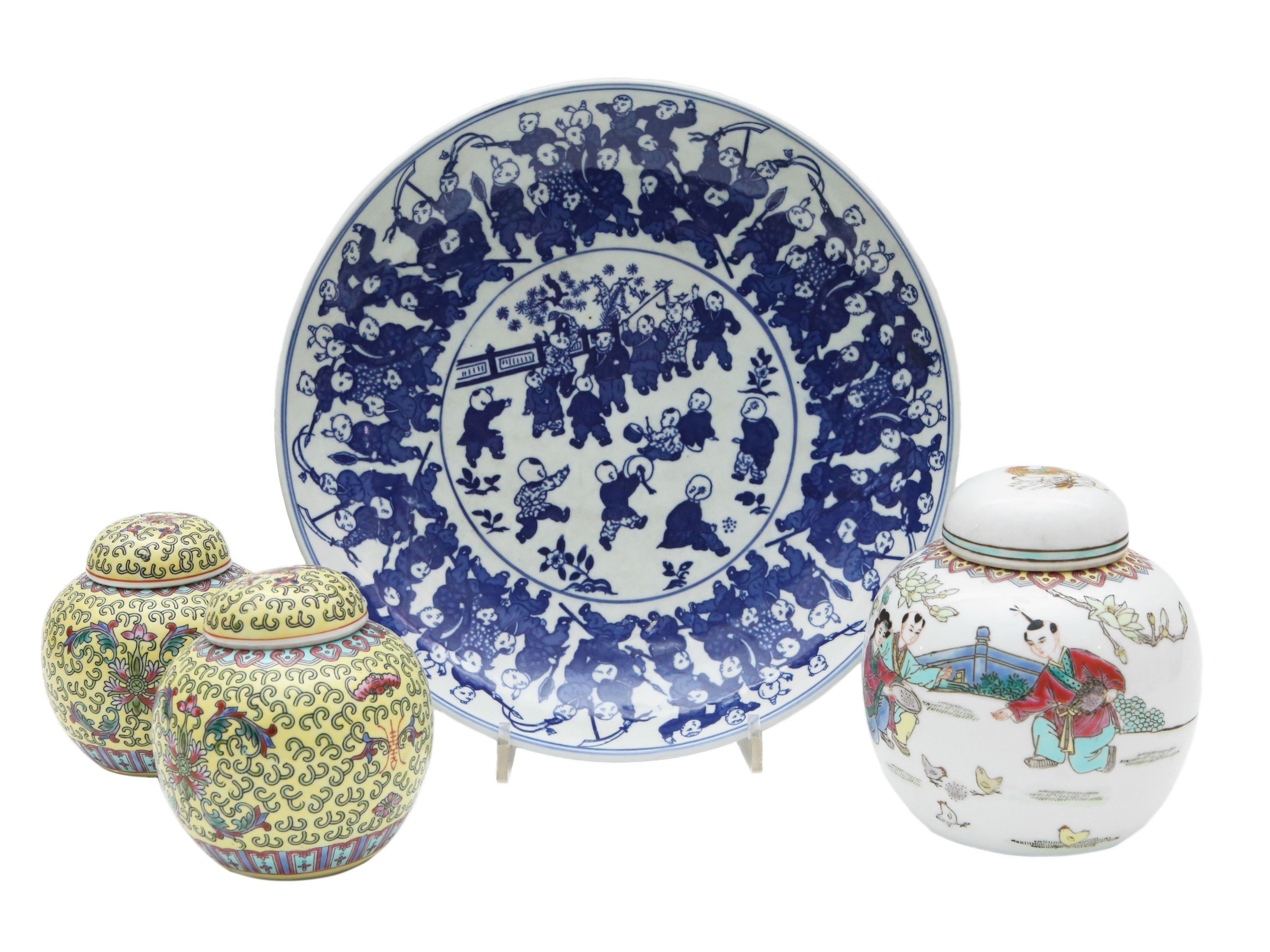 potiches h da cm 12,5 a cm 15,5, vassoio diam cm 31,5 (4)
