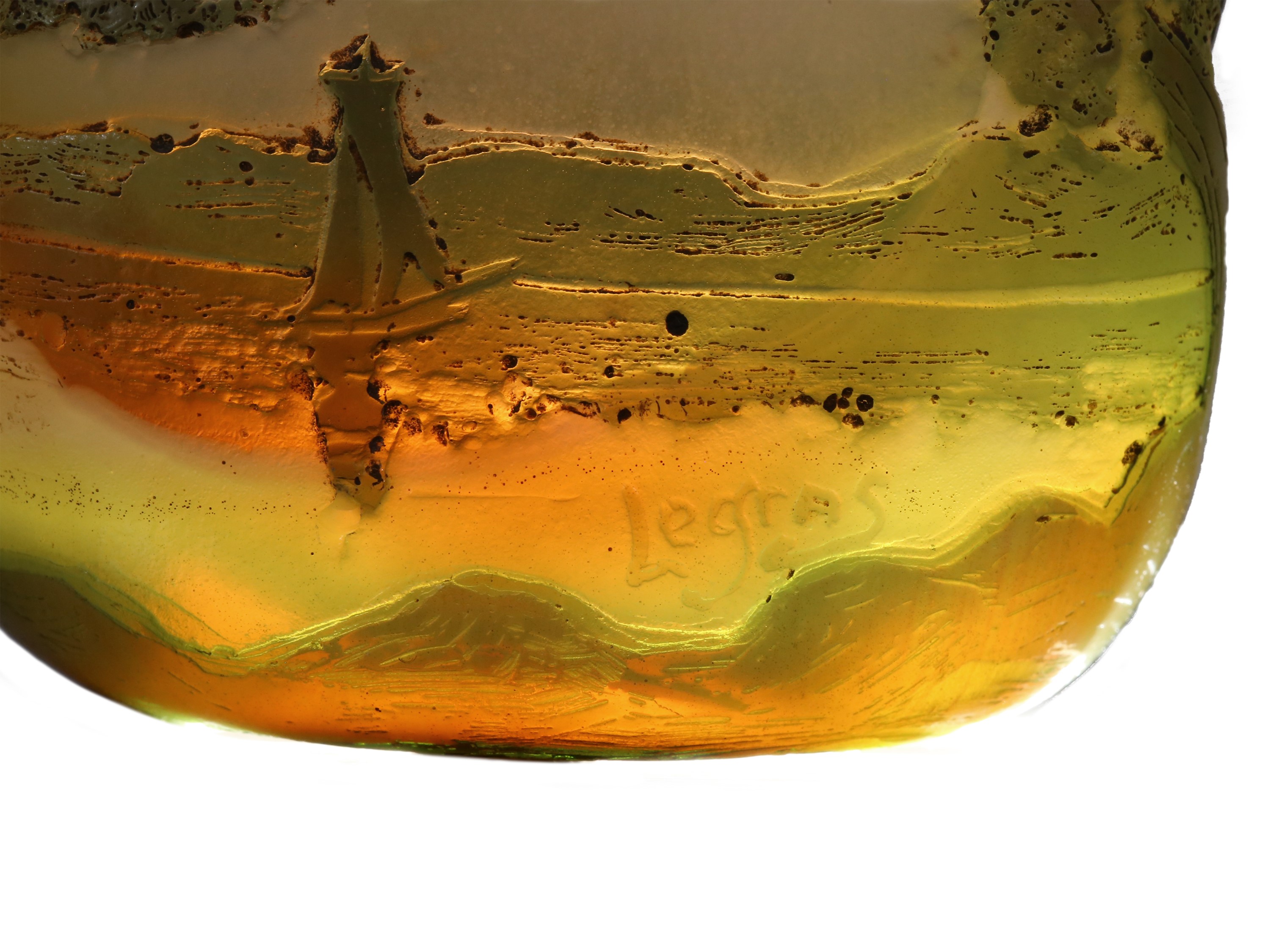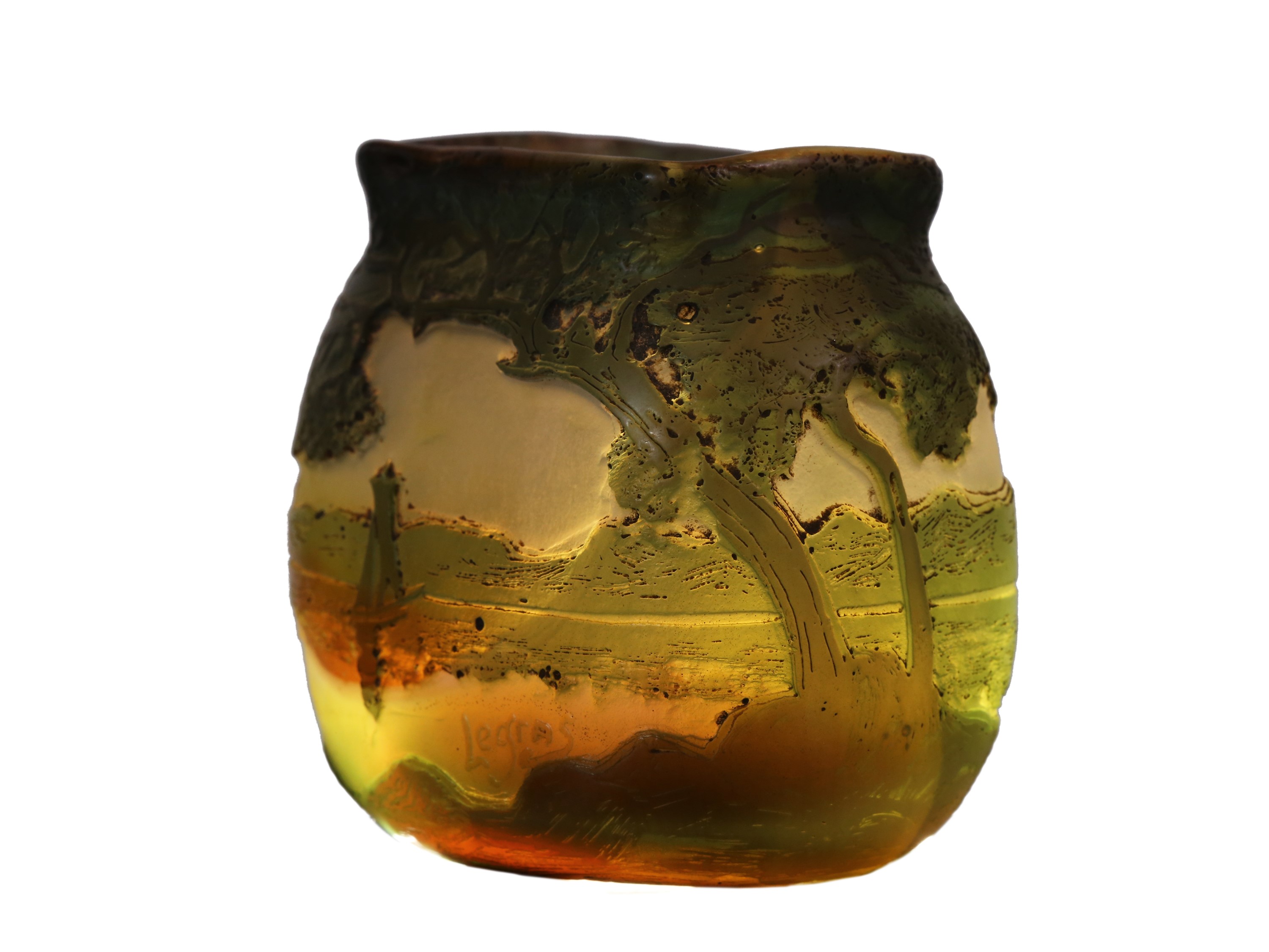 Francia, 1900 circa con decoro di paesaggio sui toni del verde. Legras & Cie Saint-Denis. Firmato Legras.