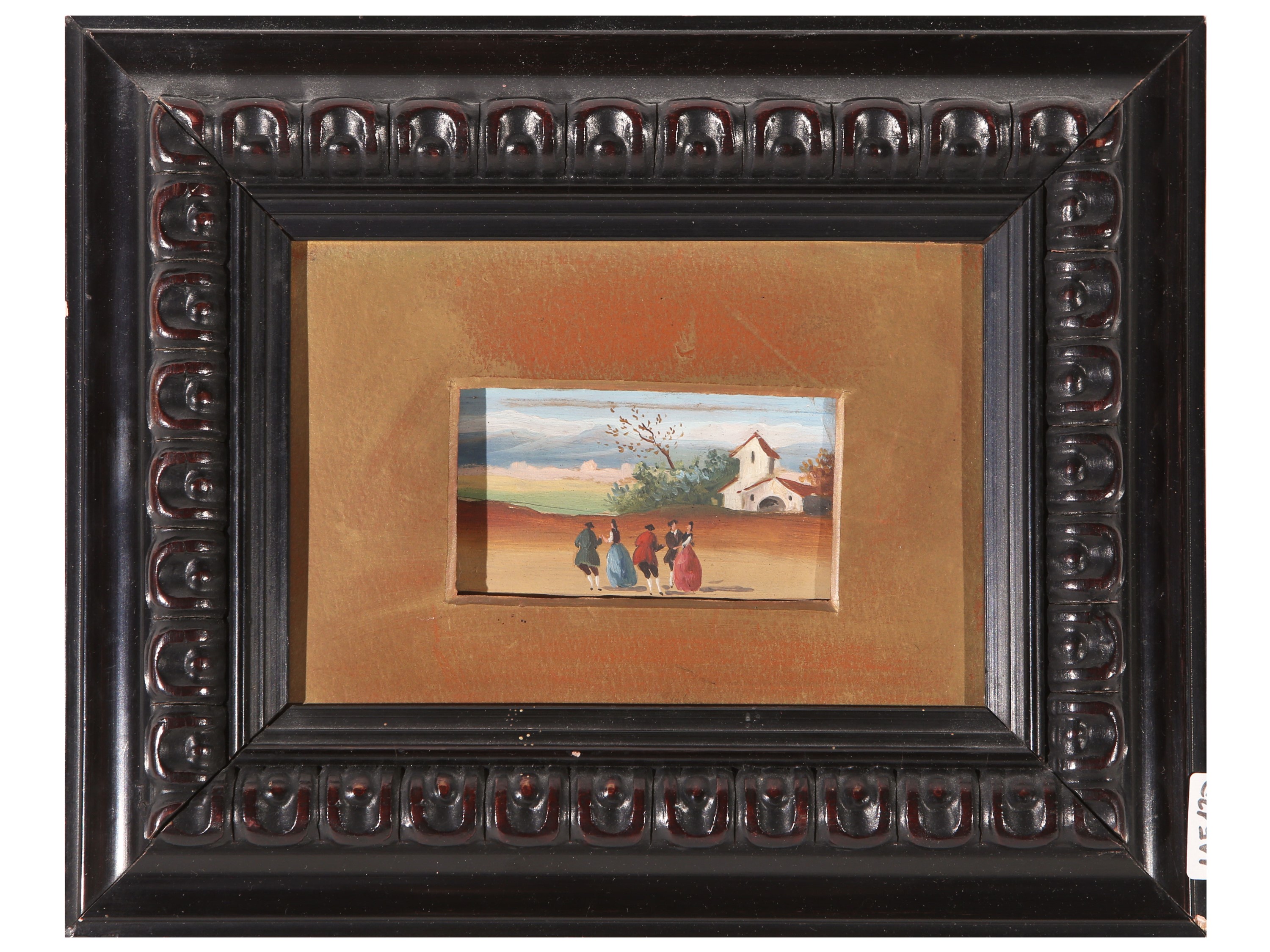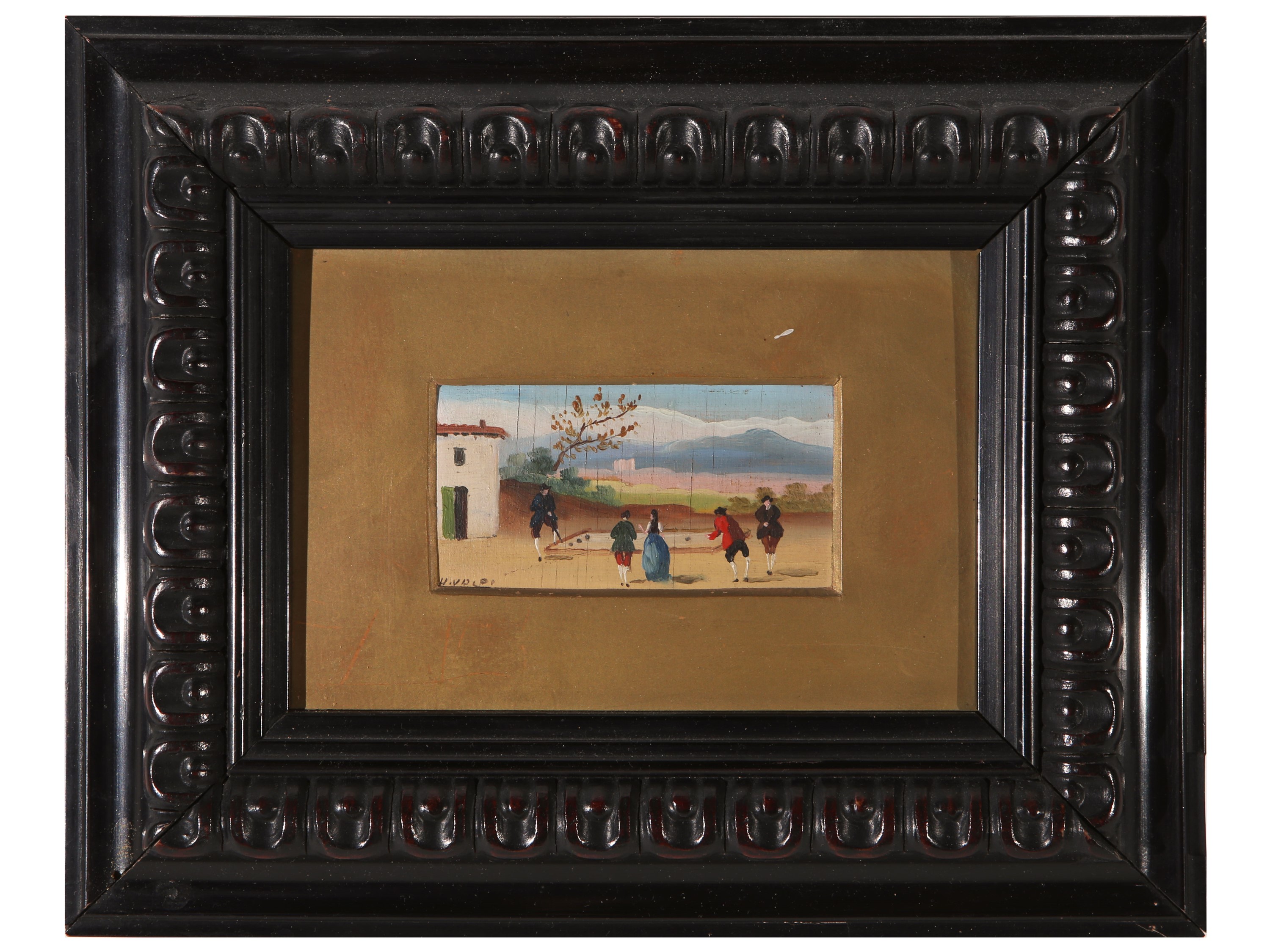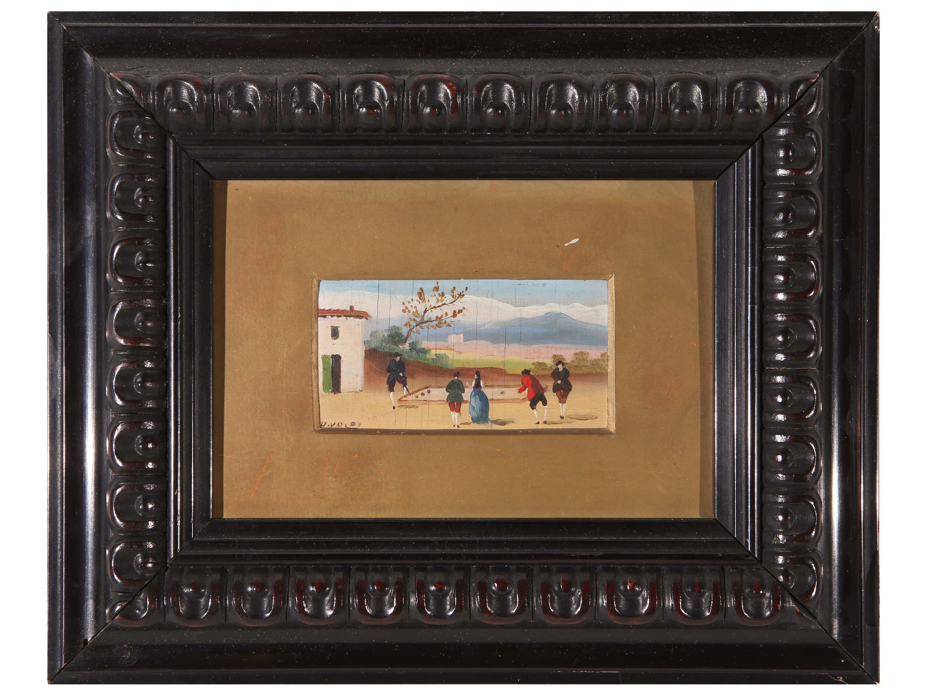 XX secolo quattro miniature dipinte ad olio su tavoletta, firmate, in cornici ebanizzate, lievi difetti