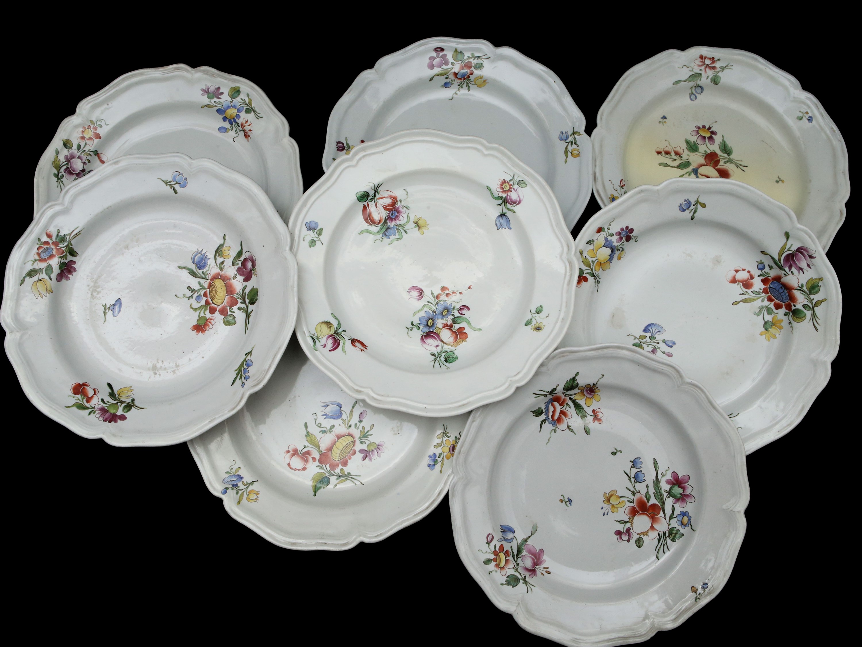 Serie di otto piatti fondi in porcellana, Ginori Doccia