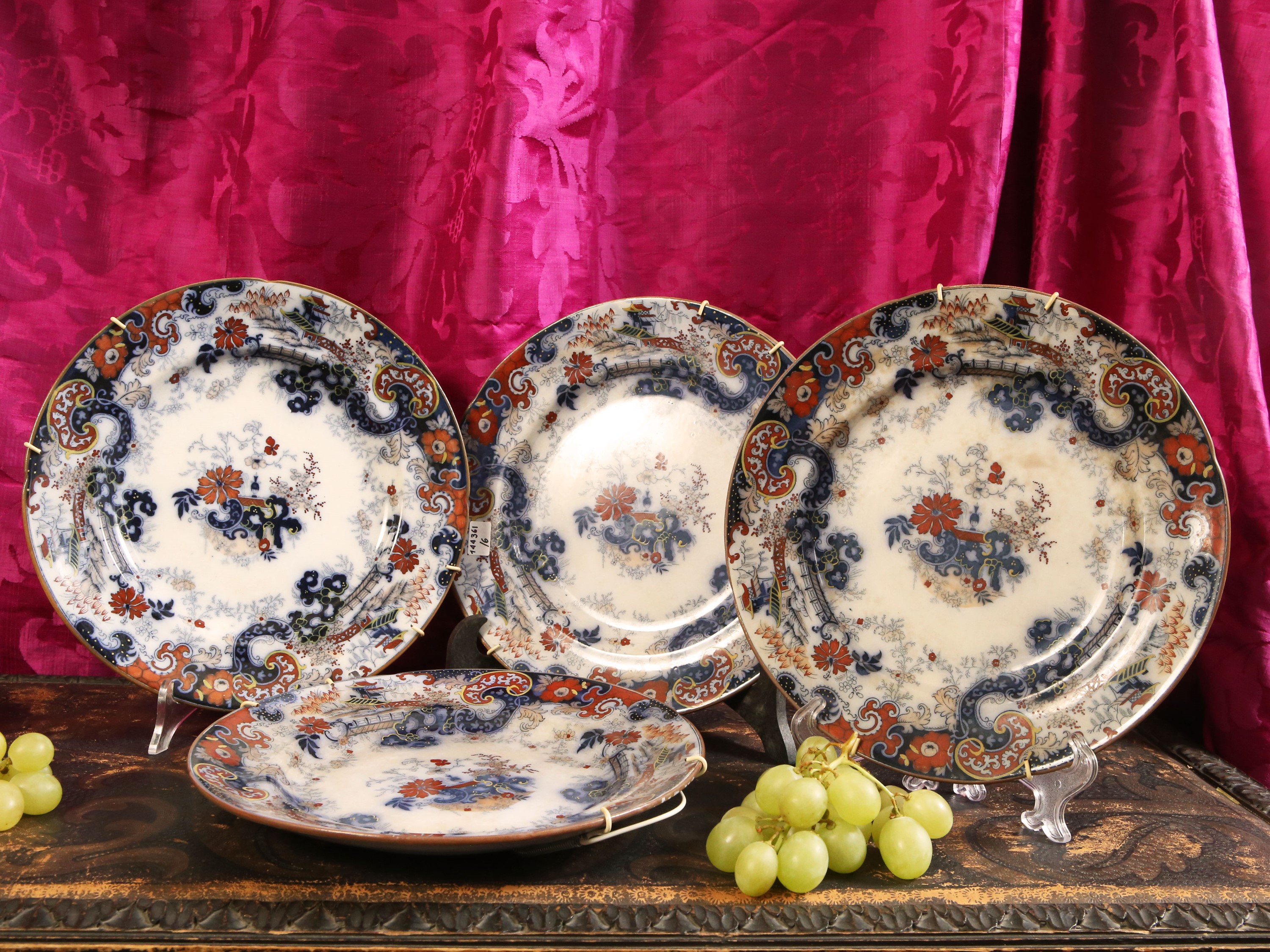 Inghilterra, fine del XIX/inizio del XX secolo decorati e dipinti con motivi floreali nei toni del blu e dell'arancio, lievi difetti