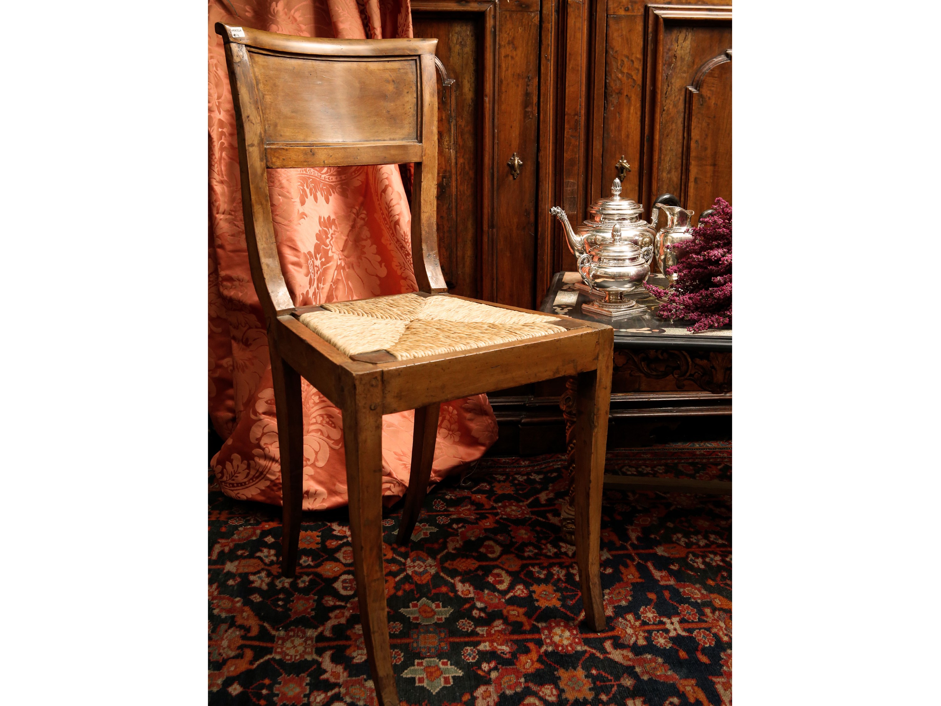 XIX secolo composto da comoda e coppia di sedie in noce con sedili impagliati, difetti