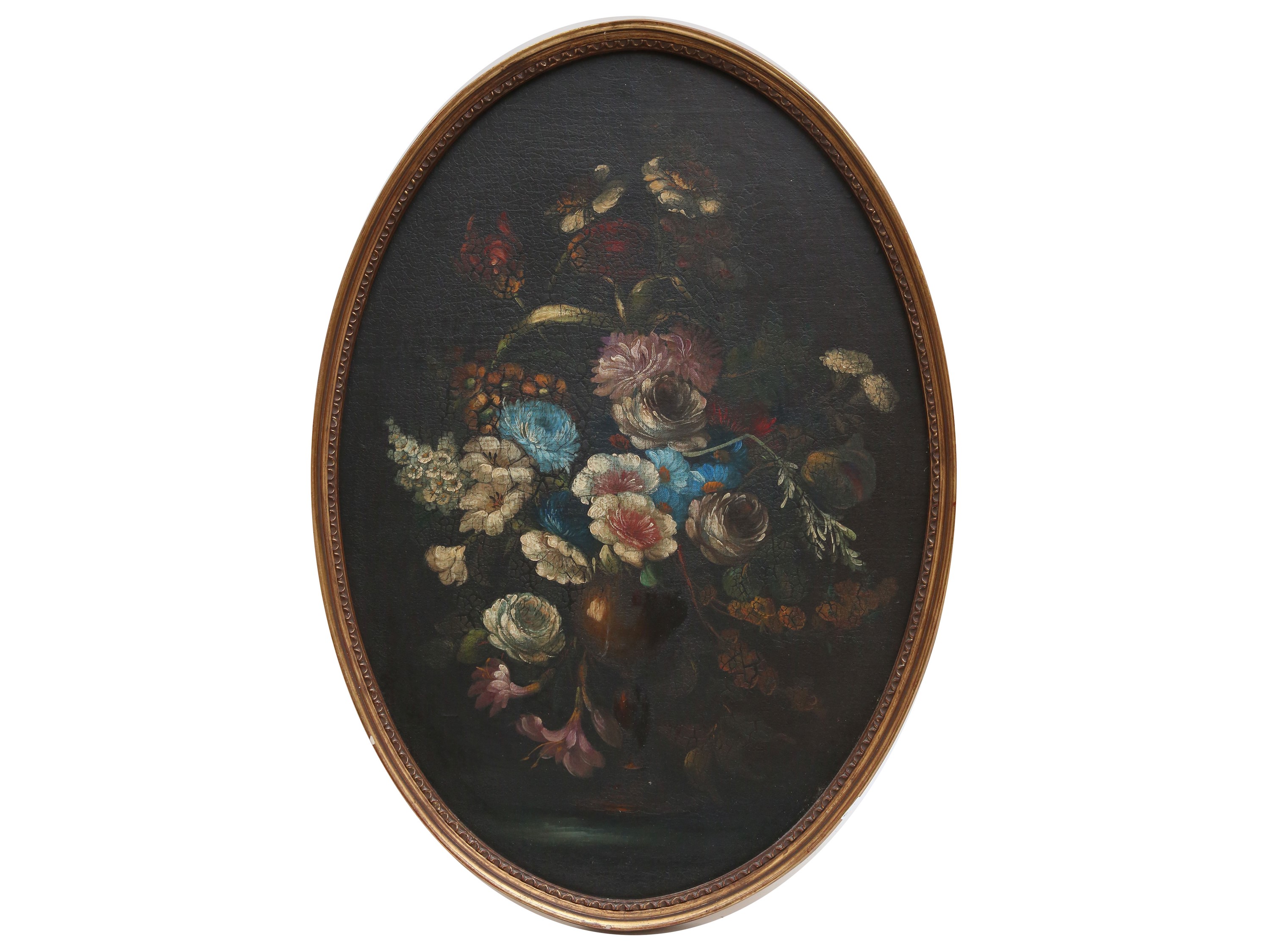 inizio del XX secolo coppia di dipinti ad olio su tavoletta in ovale, in cornice