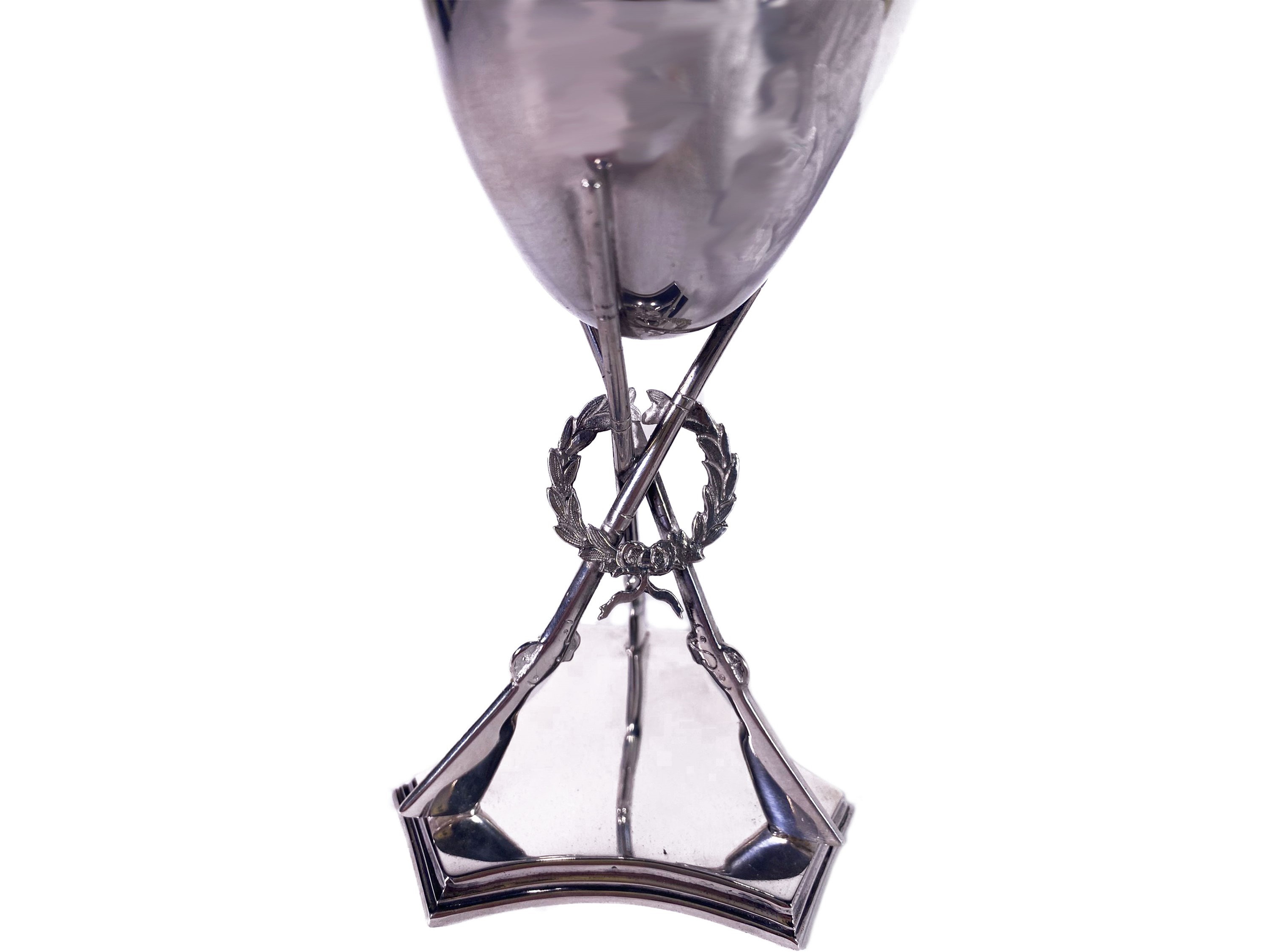 Londra, 1862 realizzato come una coppa sorretta da tripode di fucili su piede sagomato, lievi difetti
