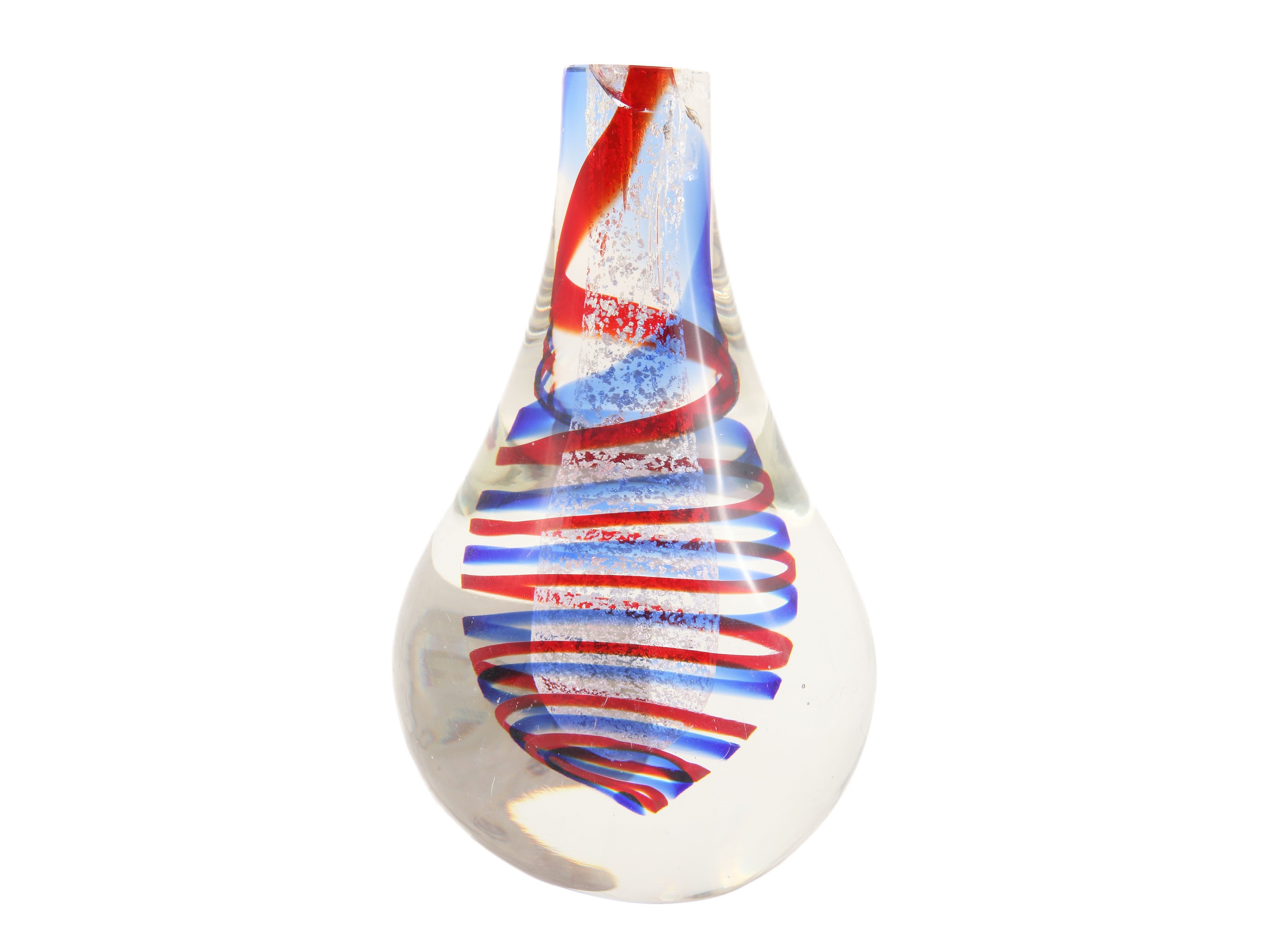 Vaso in vetro sommerso con spirale policroma all'interno