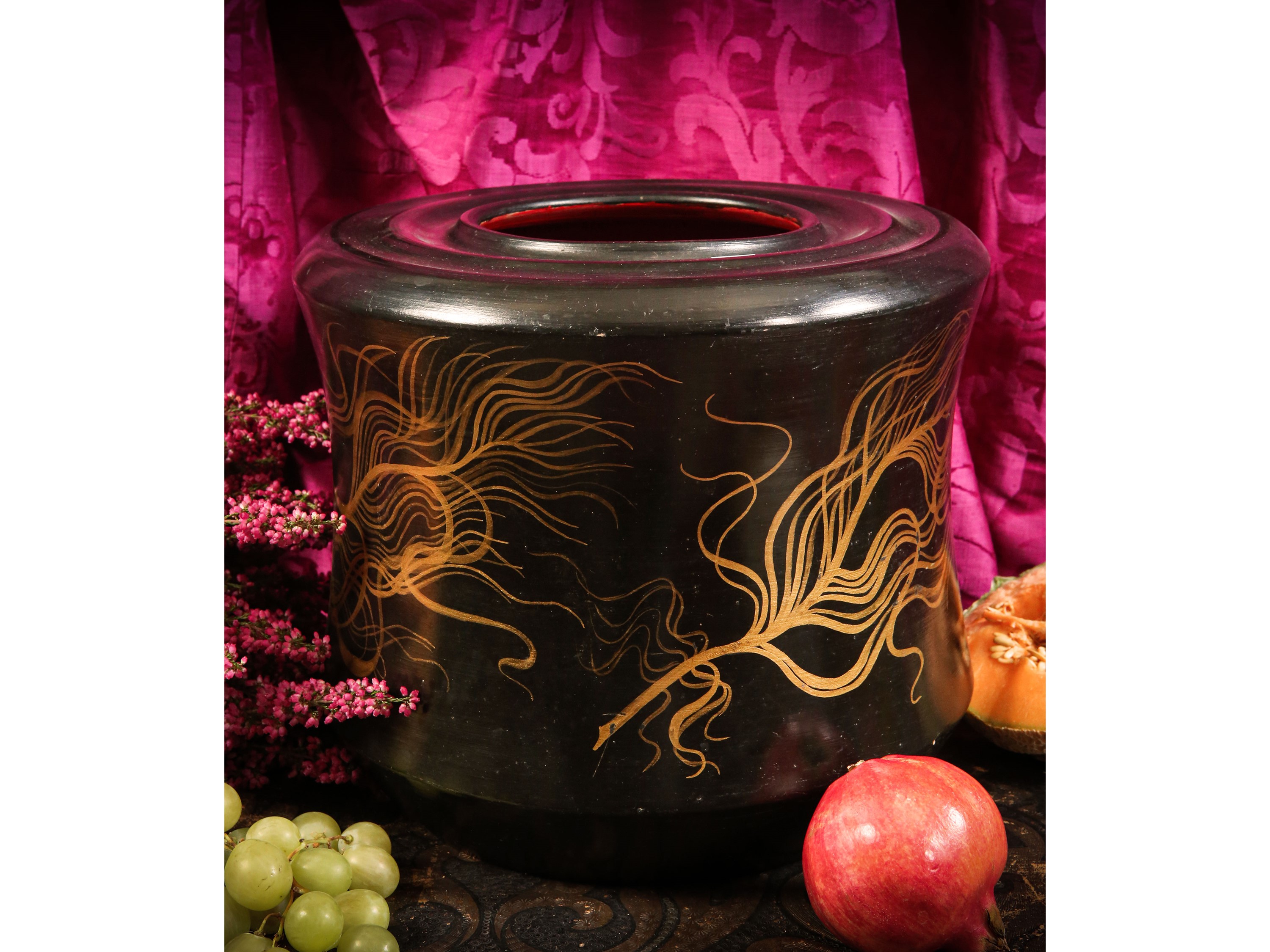 Vaso L'ellisse in ceramica smaltata nera e oro
