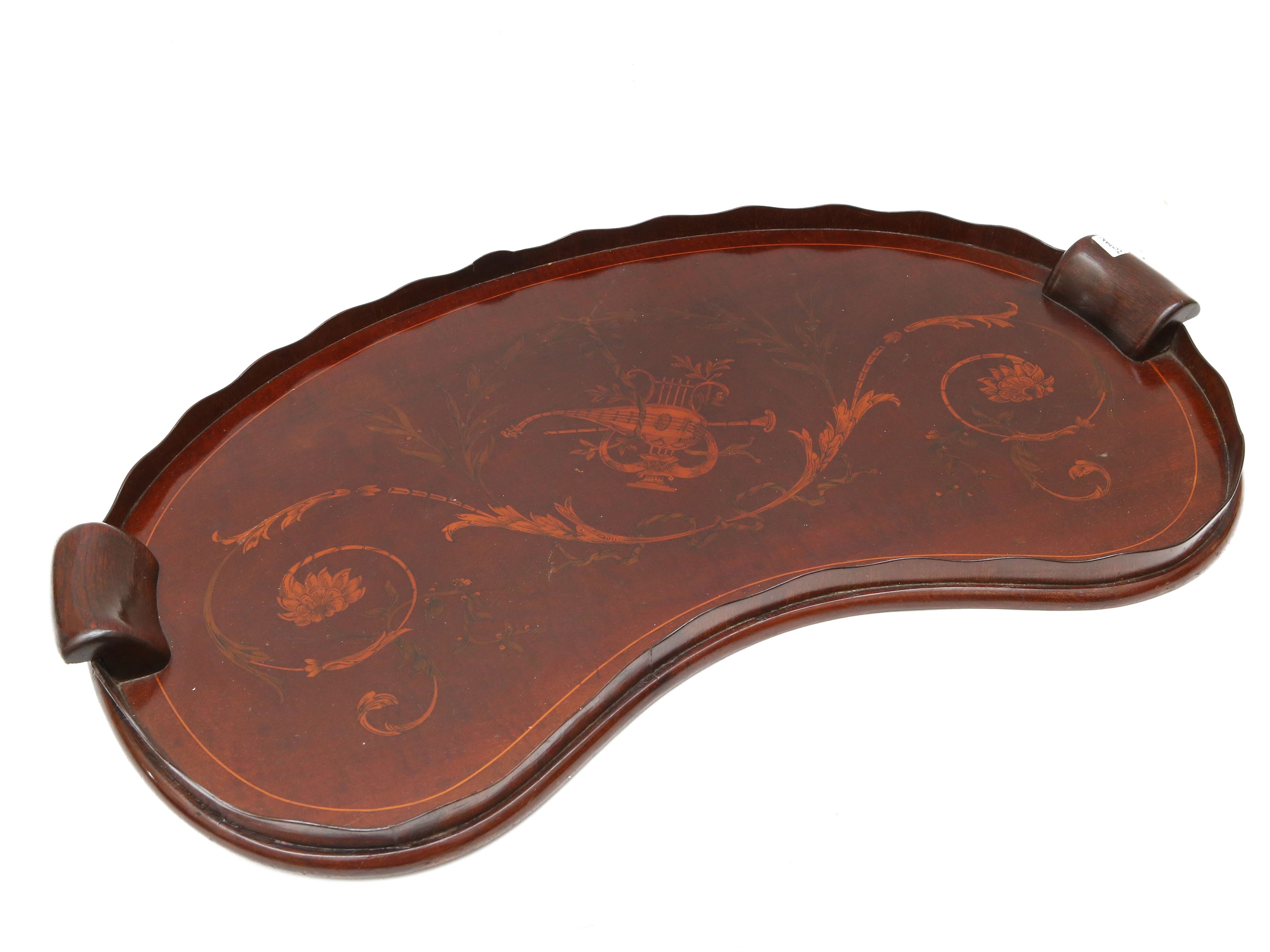 prima metà del XX secolo a foggia di fagiolo, intarsiato e pirografato con trionfo di strumenti musicali