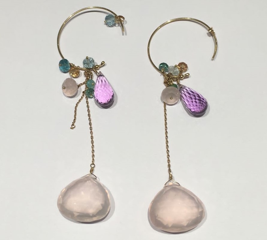 Orecchini Pendenti in Oro e Pietre Lilla Gio Moretti