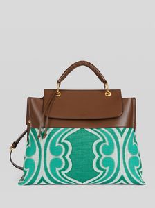Borsa a Mano in Pelle e Tessuto Etro Borsa a mano grande a trapezio, realizzata in pelle e tessuto jacquard [..]