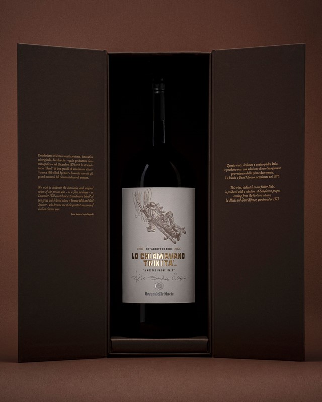 Selezione Rocca delle Macie Chianti Classico Gran Selezione, DOCG Continuavano a Chiamarlo Trinità 2019 - 1 bt Mg cs Lo Chiamavano Trinità 2016 - 1 bt Mg cs 2 bt E Limited Edition in formato magnum, realizzate per celebrare i 50 dall'uscita nelle sale cinematografiche dei due film cult e dei quali il padre del Dott. Zingarelli, nonché fondatore di Rocca delle Macìe, é stato il produttore nei primi anni '70.