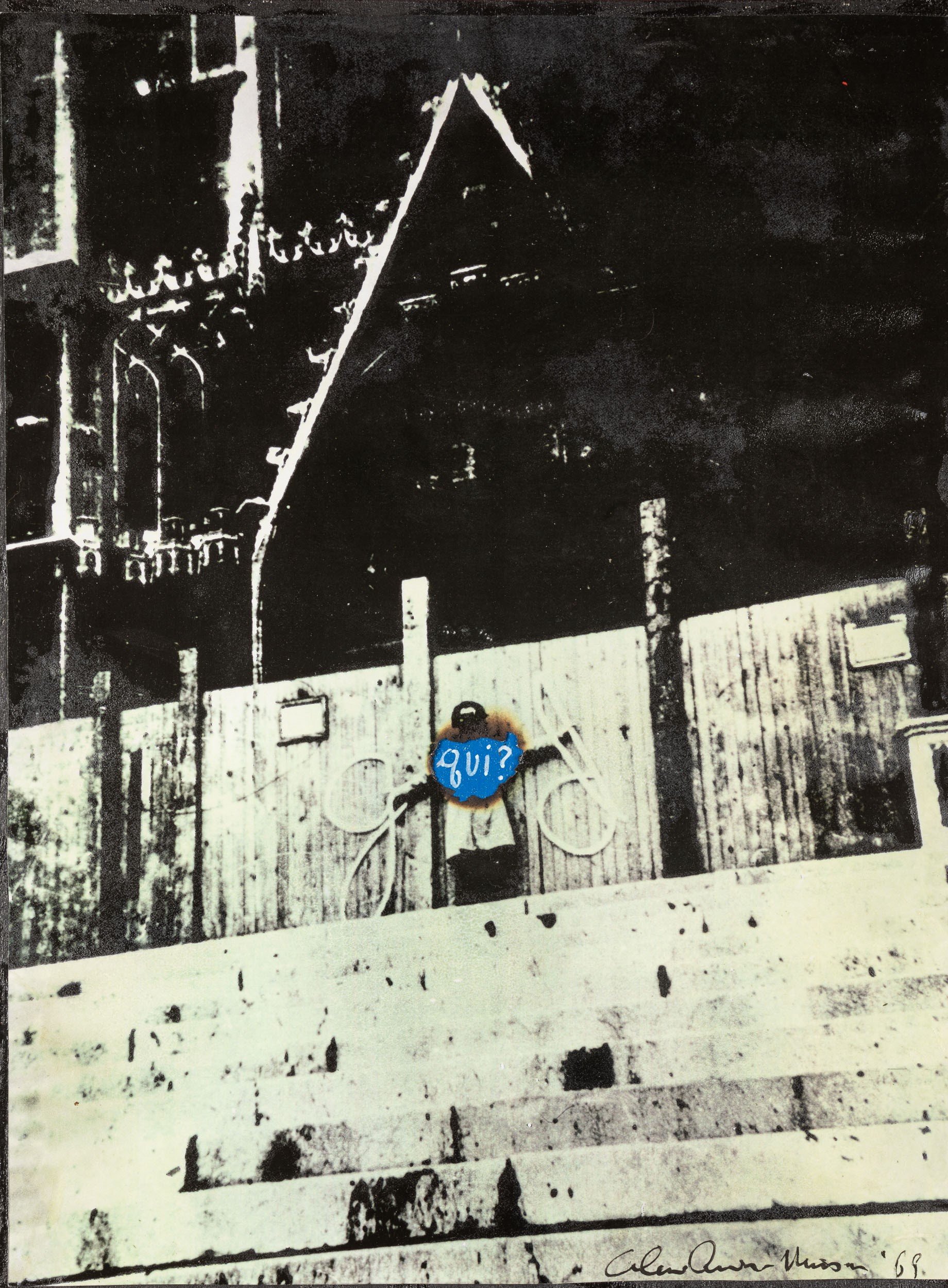 tecnica mista su stampa fotografica applicata su tavola, Largh. 28,5 - Alt. 38 Cm