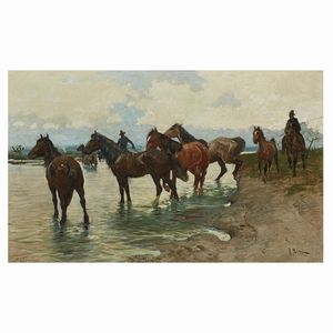 Ruggero Panerai (Firenze 1862 - Parigi 1923) IL GUADO olio su tela, cm 131x211 firmato in basso a destra THE [..]