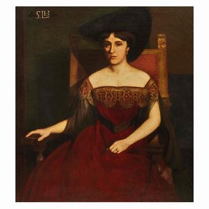 Oscar Ghiglia (Livorno 1876 - Firenze 1945) RITRATTO DI SILVIA LEVI BONDI olio su tela, cm 111,5x100,5 monogramma [..]