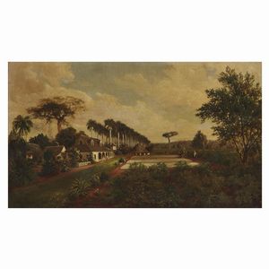 Esteban Chartrand (Cuba 1840 - Hoboken 1884) PAESAGGIO CUBANO olio su tela, cm 44x74,5 firmato e datato marzo [..]