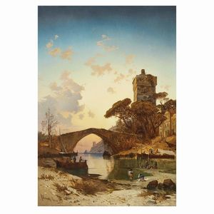 Emilio Donnini (Firenze 1809 - 1886) PONTE ALLA VITTORIA, FIRENZE olio su tela, cm 45,5x64 firmato e datato Firenze [..]