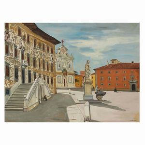 Yves Brayer (Versailles 1907 - Parigi 1990) PLACE DES CHEVALIERS A PISE olio su tela, cm 97x130 firmato in basso [..]
