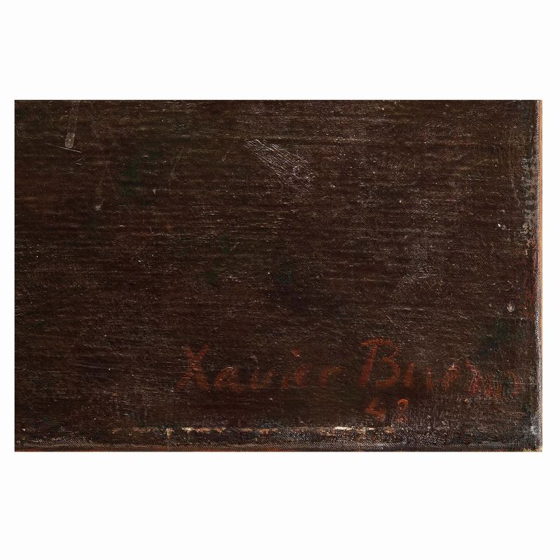 Nel gennaio del 1940 Xavier Bueno si reca a Firenze assieme al fratello Antonio e alla madre Hannah, e quello che avrebbe dovuto essere solo un soggiorno all’interno del classico grand tour in Italia, fondamento della formazione culturale di ogni artista europeo, condurrà alla decisione di trascorrere a Firenze l’intera vita. Sino a quel momento, le opere di Xavier Bueno sono caratterizzati da una forte impronta di “realismo spagnolo”, individuando i principali modelli di riferimento in autori classici iberici quali Velzquez, Murillo, Zurbaràn e Goya. Ciò è evidente anche nella stessa opera Il cacciatore presentata in questa vendita, dipinto firmato e datato “42”, ove tanto il soggetto quanto la stesura stilistica e le dimensioni riconducono alla formazione spagnola dell’artista.