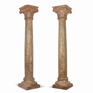 COPPIA DI COLONNE, ITALIA SETTENTRIONALE, FINE SECOLO XV in marmo rosato rosso di verona di tipo broccato, complete [..]