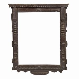 CORNICE AD EDICOLA, TOSCANA, METÀ SECOLO XVI in noce intagliato con sagoma a cassetta, battuta decorata [..]
