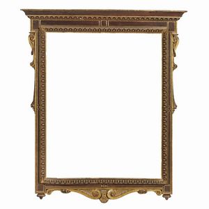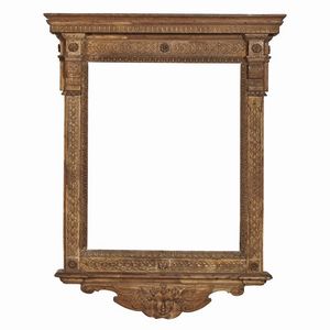CORNICE A EDICOLA, FIRENZE, 1550 CIRCA in noce intagliato e scolpito con lumeggiature in oro, battuta liscia sale [..]
