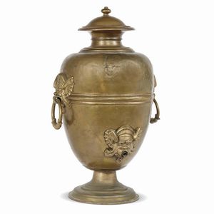GRANDE ACQUAMANILE, TOSCANA, SECONDA METÀ SECOLO XVI in ottone sbalzato, fuso e cesellato, il coperchio [..]