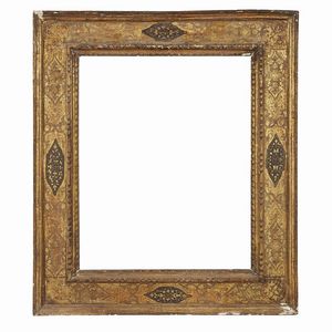 CORNICE, ITALIA CENTRALE, PRIMA METÀ SECOLO XVI in legno intagliato e dorato con sagoma a cassetta, battuta [..]
