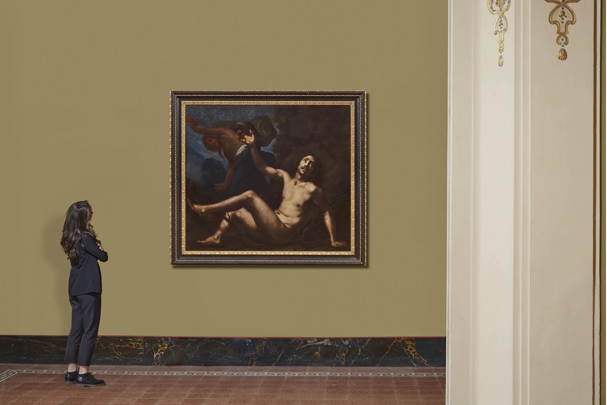 Il risultato è questa volta uno dei più felici, come nel raffinatissimo Giona di raccolta privata, sebbene non sostenuto – in ossequio al tema penitenziale – dalla ricchezza cromatica di quello e di altri dipinti eseguiti nel quarto decennio del Seicento. L’equilibrio della composizione, risolta in sostanziale monocromia, è dunque interamente affidato all’uso sapiente del chiaroscuro che esalta il nudo del santo tra i rovi mentre gli scarsi accenti cromatici sono limitati alla tentatrice in fuga.