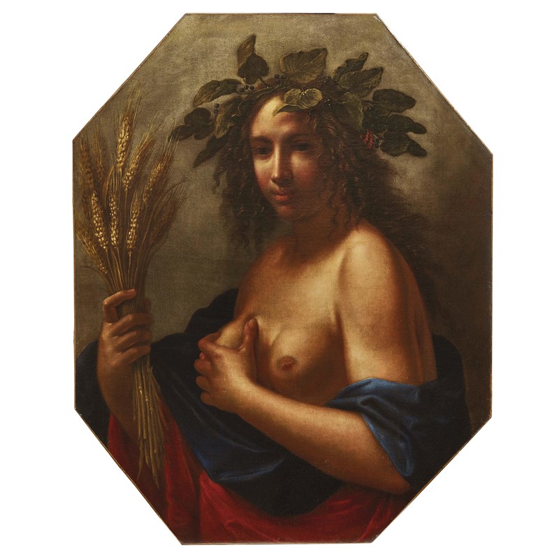 Reso noto da Clarice Innocenti nel 1985 che ne indicava la provenienza insieme ad altri tre ottagoni con l'Allegoria della Musica, l'Allegoria della Scultura e l'Allegoria della Fedeltà, tutti riferiti a Orazio Fidani (Innocenti 1985), la tela è stata successivamente ricondotta al pennello di Mario Balassi da Roberto Contini (Contini 1989), seguito da Francesco Baldassari (Baldassari 1992). Marina Mojana ha poi espunto questa Allegoria dell'Estate dalla monografia dedicata al Fidani per la "pellicola pittorica levigata e compatta" più in sintonia con Balassi (Mojana 1996). Federico Berti ha infine suggerito una sua possibile identificazione con una tela facente parte di una coppia di ottagoni descritta nell'inventario tardo seicentesco della collezione Gerini (Berti 2015, p. 129).