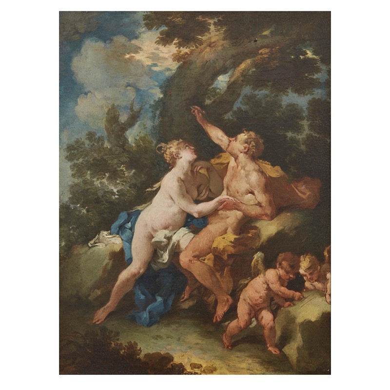 Tra gli esemplari più noti, la tela nella Galleria Comunale di Prato e quella in collezione privata a Parma, appunto corrispondenti alla nostra composizione. Per tutte si veda il catalogo di Giancarlo Sestieri, Michele Rocca e la pittura rococò in Italia, s.l. 2004, pp. 152-154, 1 A-D e tavv. I e II, oltre che l’elenco di Hermann Voss (Die Malerei des Barock in Rom, Berlino 1924), il primo a occuparsi del pittore.
