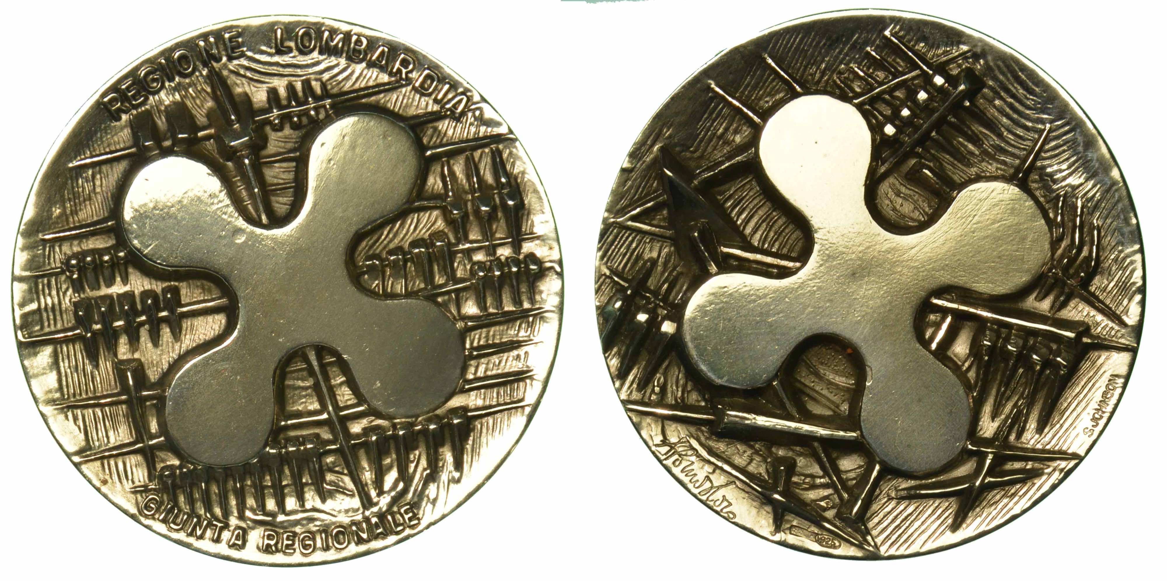 ARNALDO POMODORO - REGIONE LOMBARDIA. Medaglia scultura in argento.