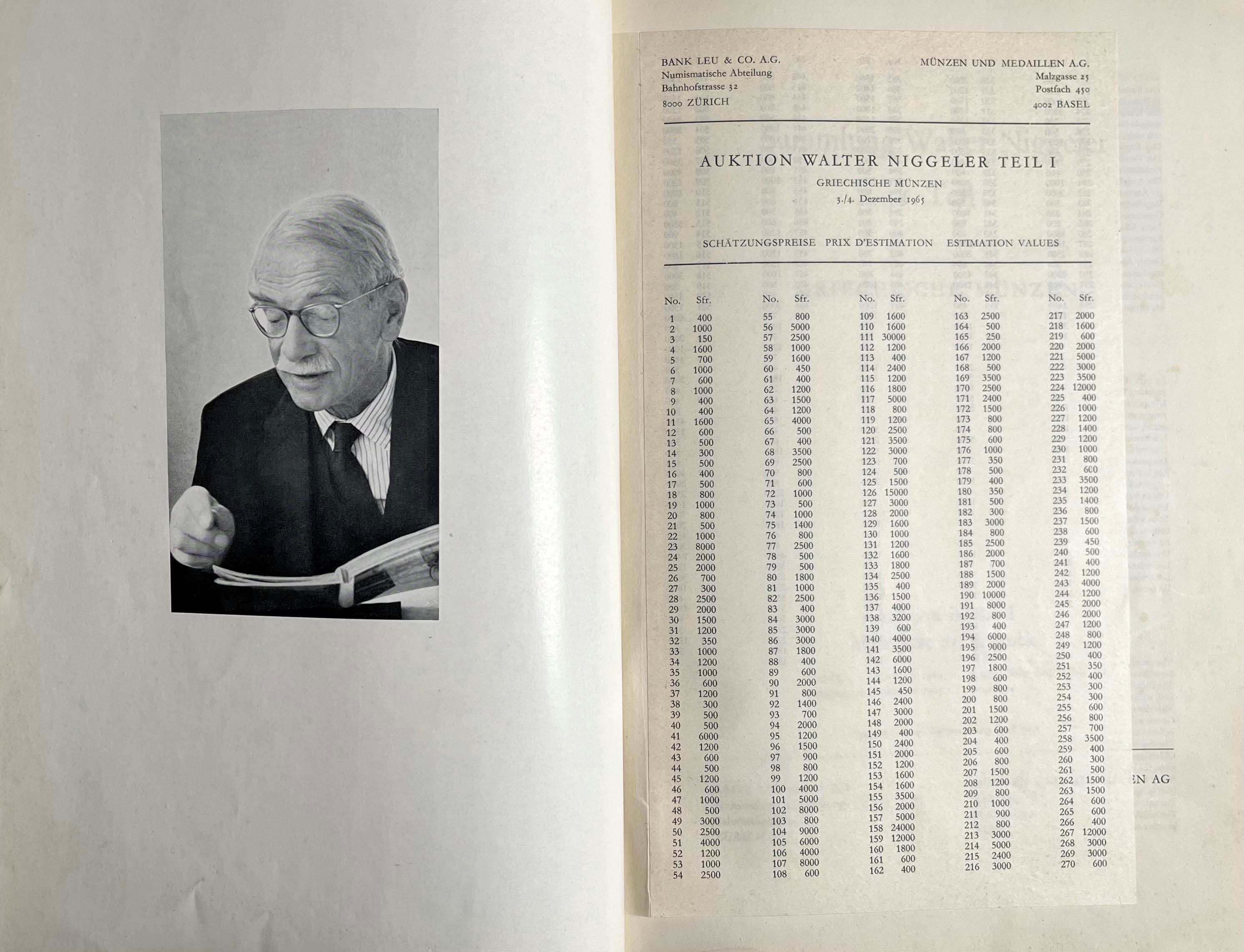 BANK LEU AG., & MUNZEN & MEDAILLEN AG. Sammlung WALTER NIGGELER. Teil I–IV. Zurigo/Basilea, [..]