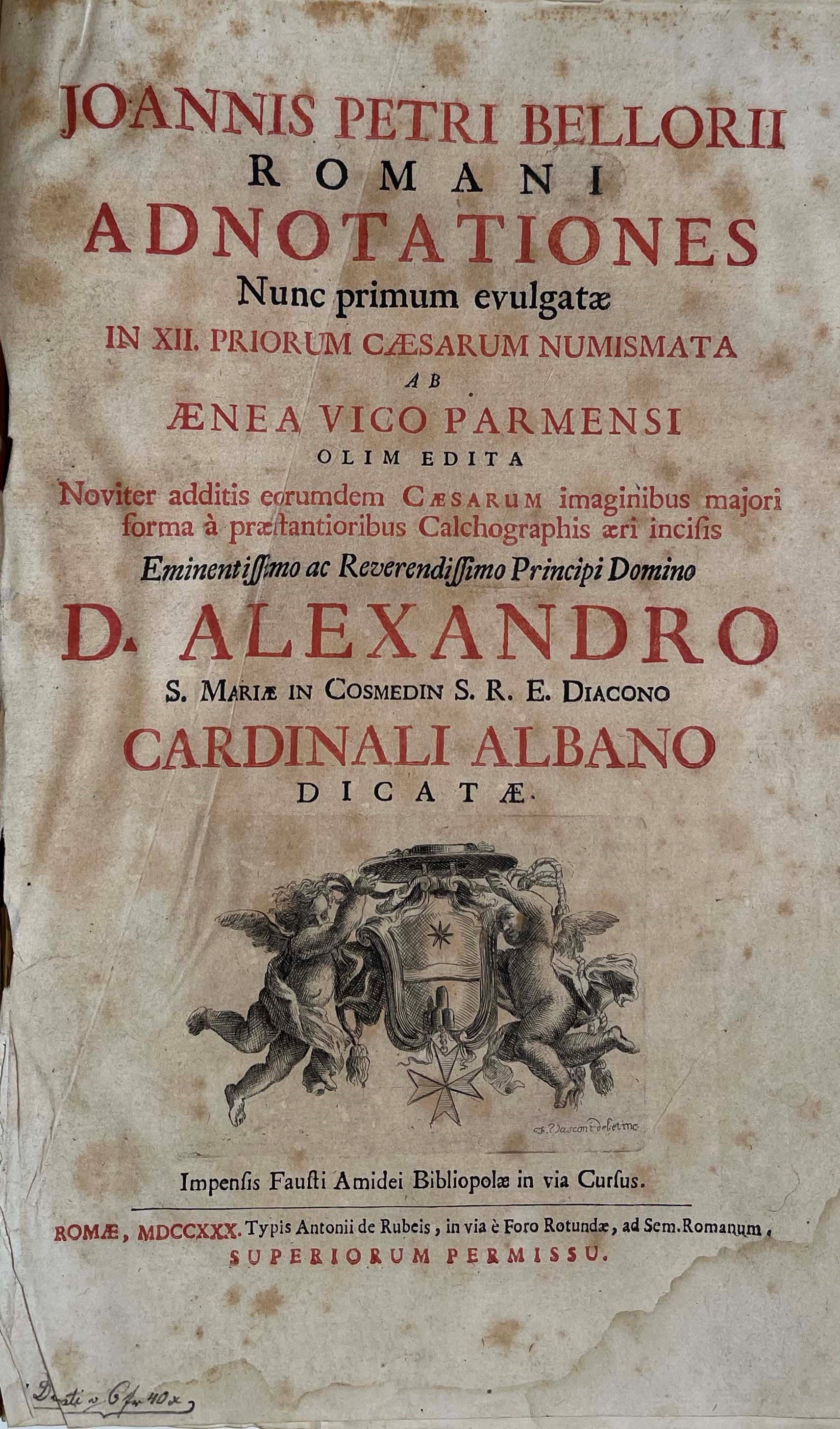 BELLORI J. P. Adnotationes Romani Nunc primum evulgatae in XII. Priorum Caesarum [..]