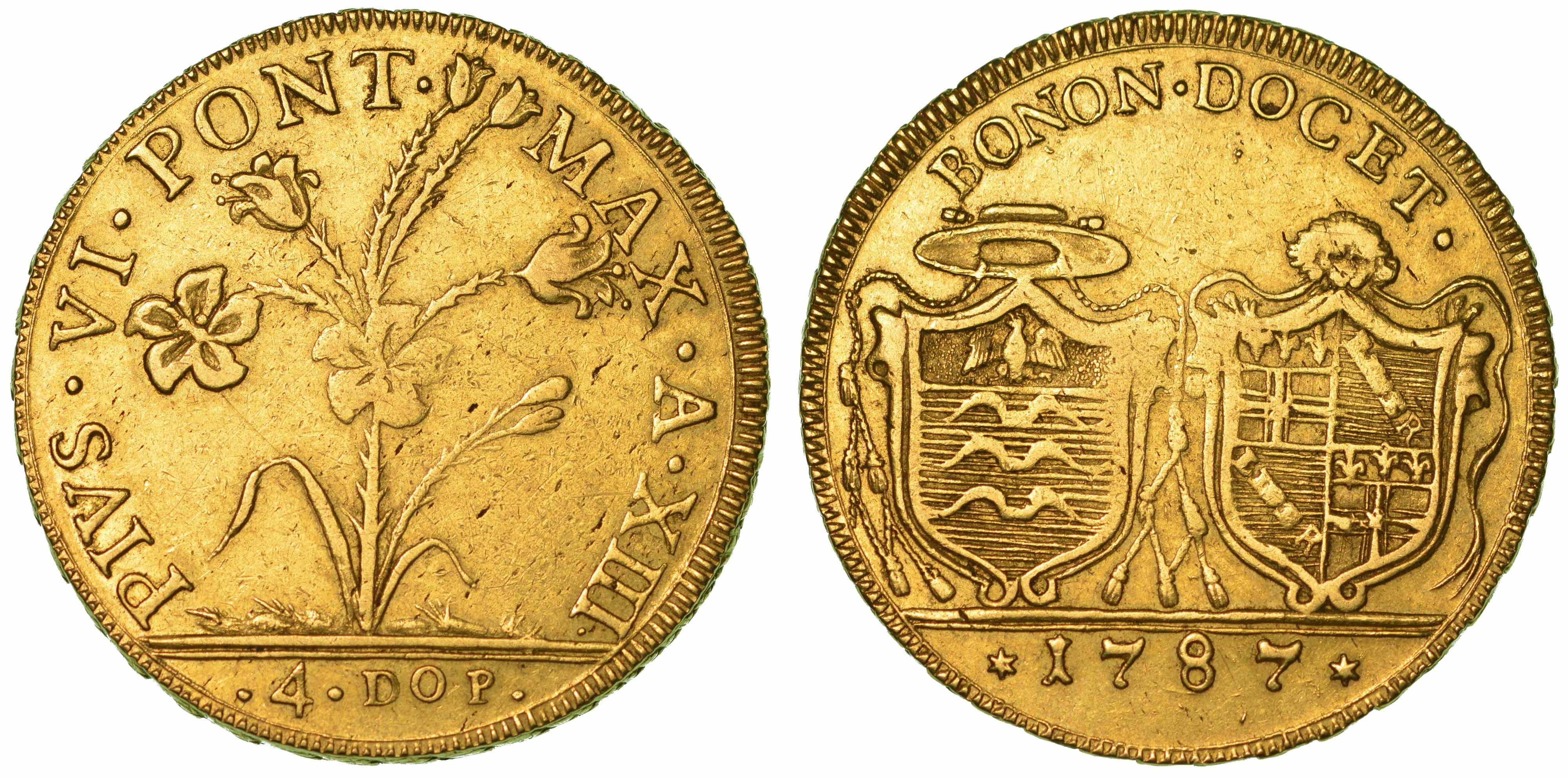 BOLOGNA. PIO VI, 1775-1799. Da 4 Doppie 1787/A. XIII.