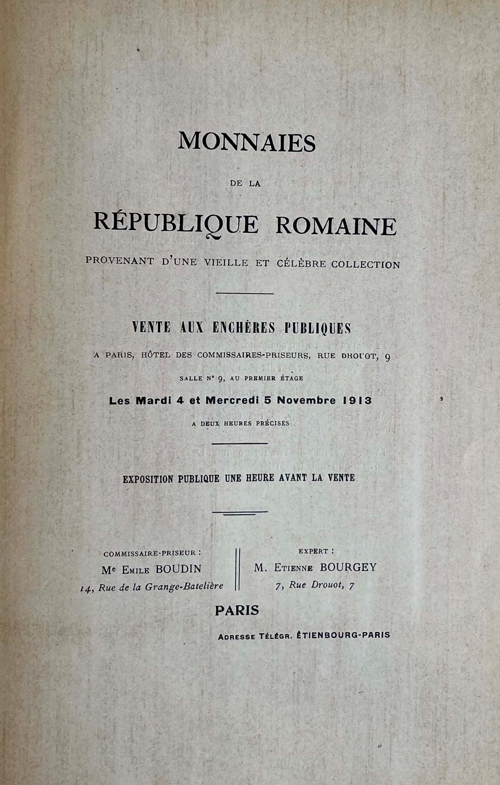 BOURGEY E. Monnaies de la Republique Romaine provenant d'une vielle et celebre collection [..]