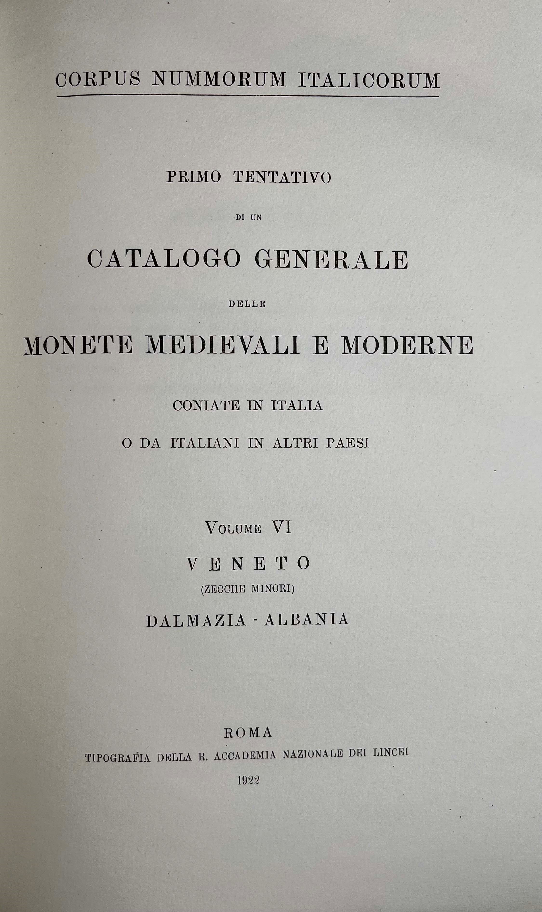 CORPUS NUMMORUM ITALICORUM. Primo tentativo di un catalogo generale delle monete [..]