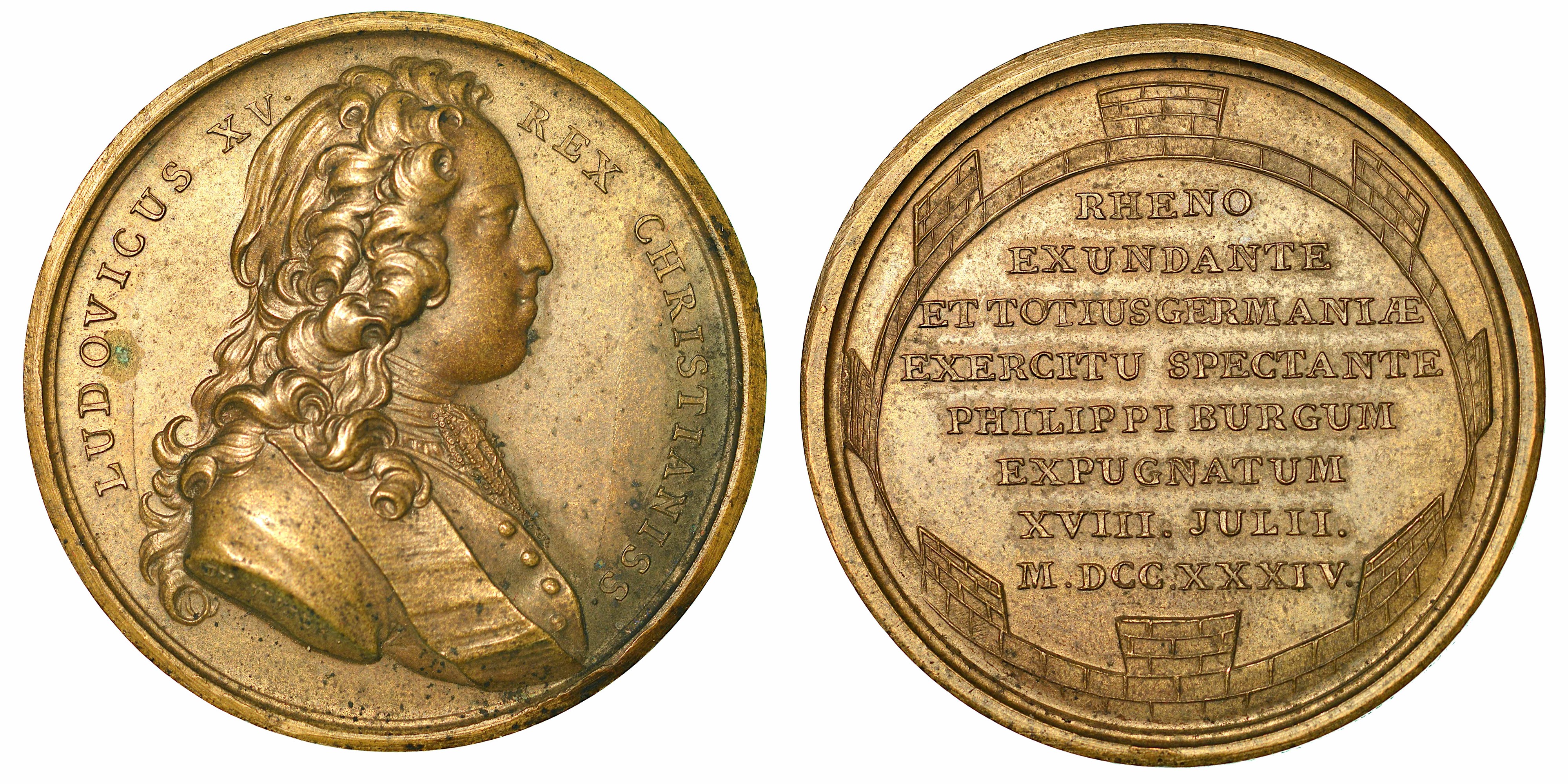 FRANCIA. LOUIS XV, 1715-1774. PRESA DI PHILIPPSBOURG. Medaglia in bronzo 1734. P [..]
