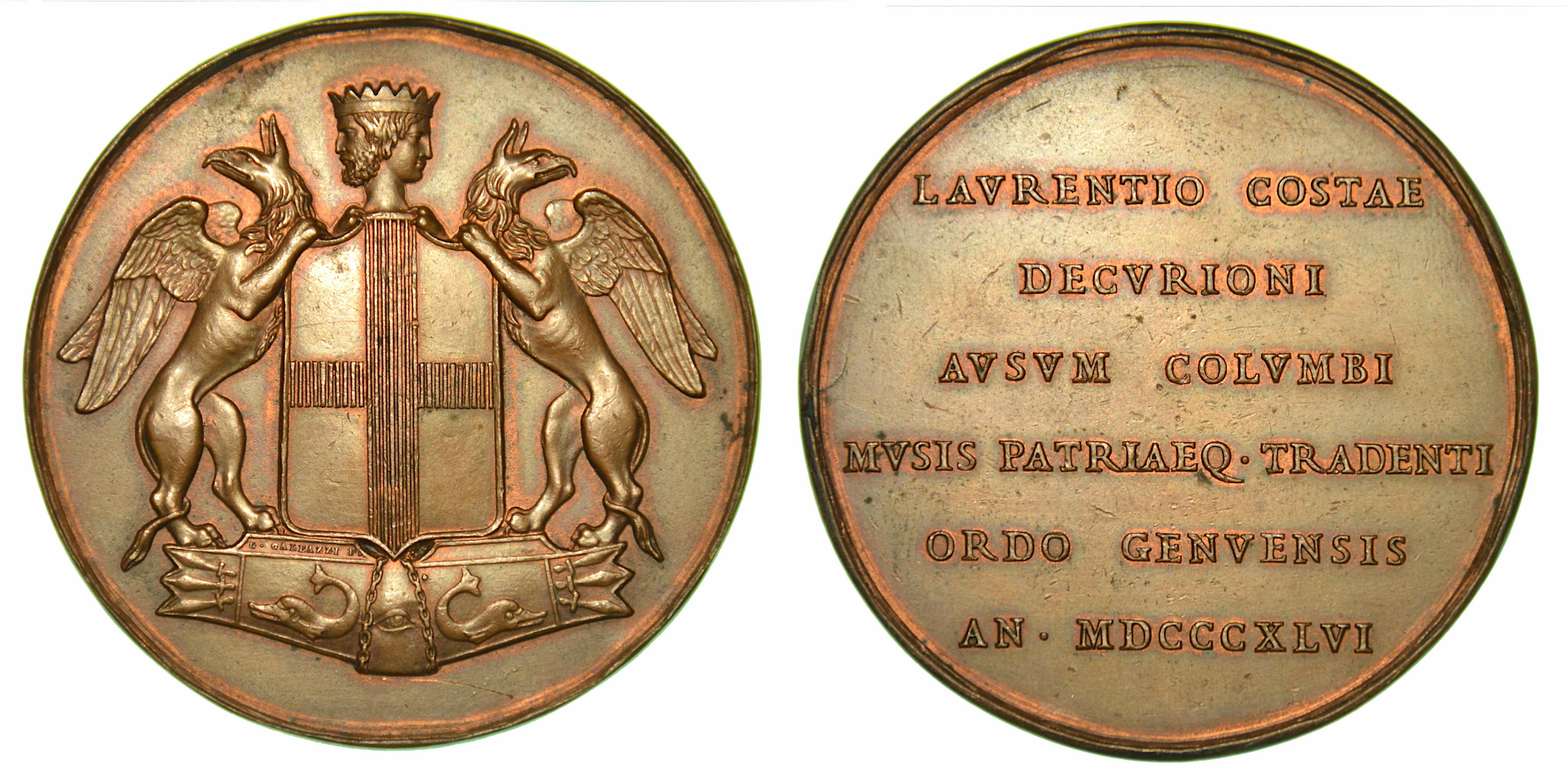 GENOVA. A Lorenzo Costa. Medaglia in bronzo 1846.