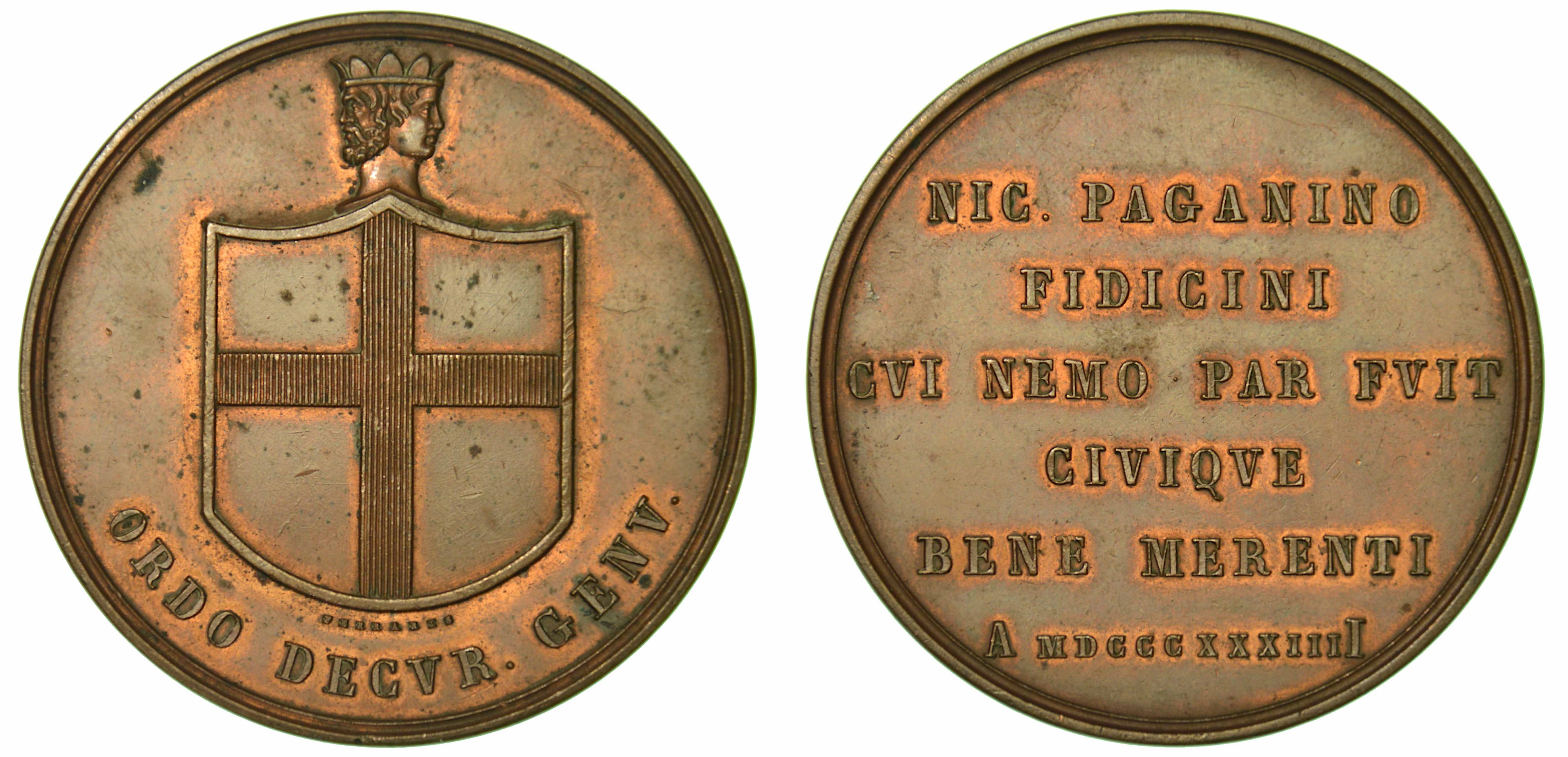 GENOVA. A Niccolò Paganini. Medaglia in bronzo 1834.