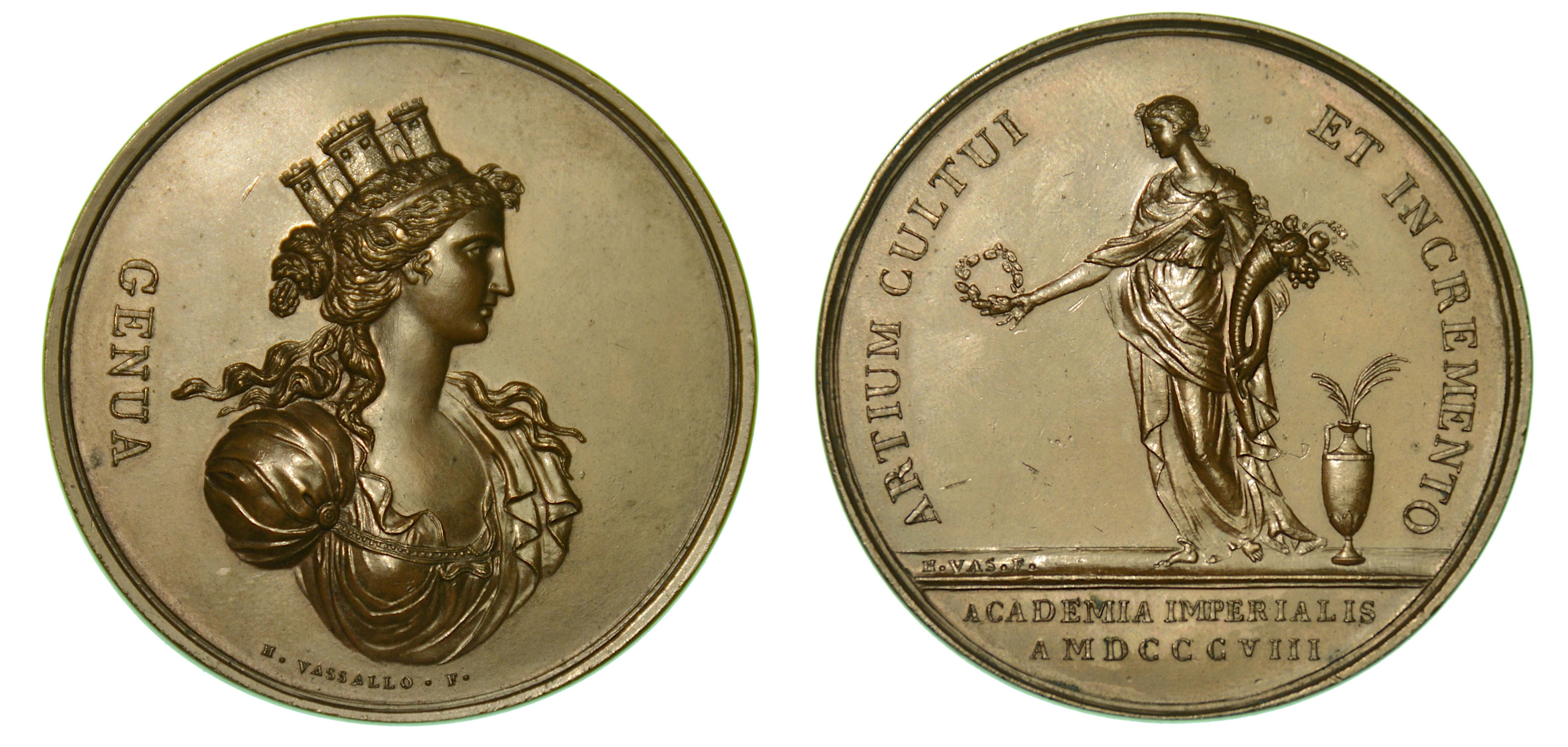 GENOVA. Accademia Imperiale. Medaglia in bronzo 1808.