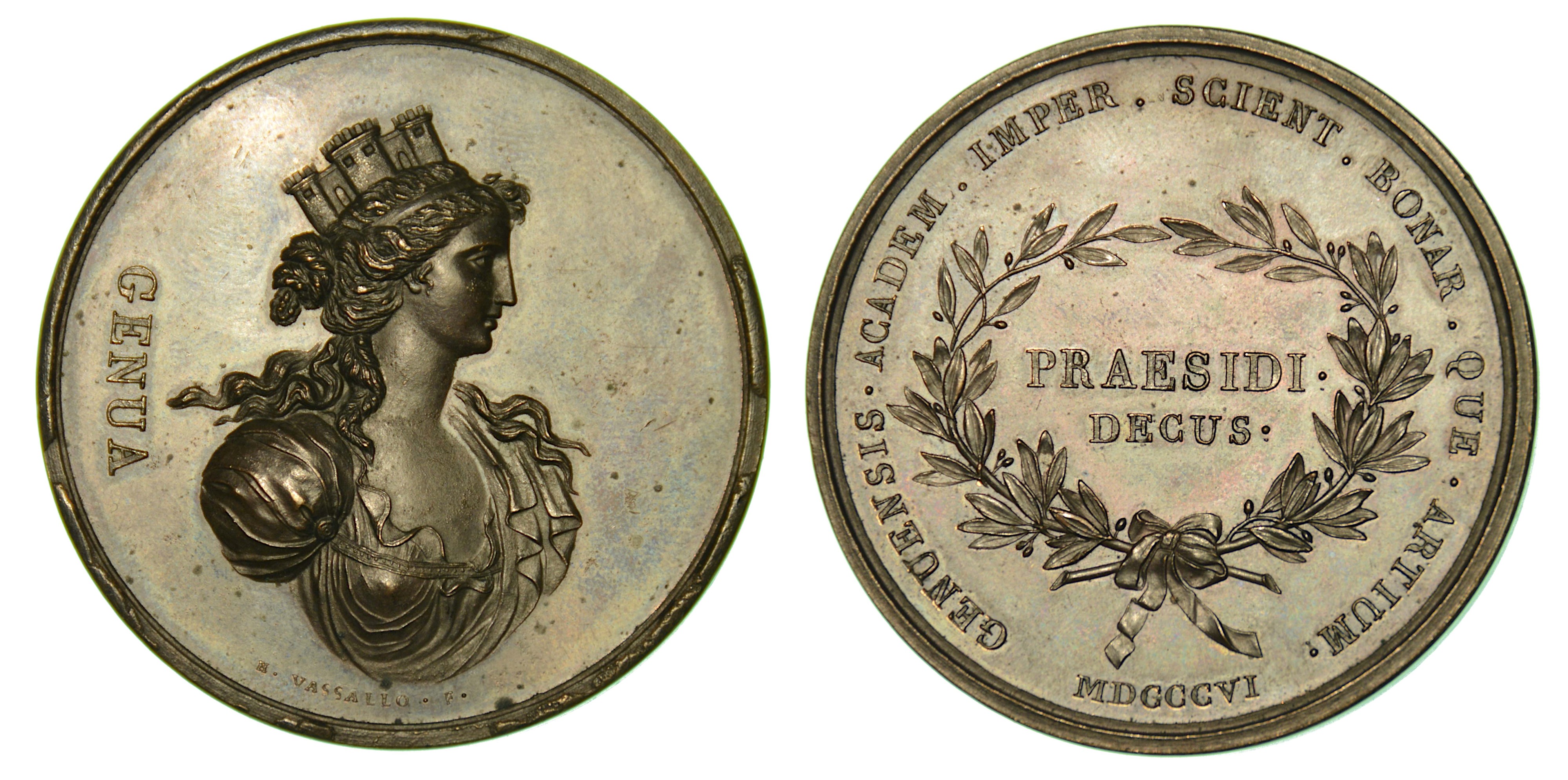GENOVA. Accademia Imperiale. Medaglia in bronzo 1806.