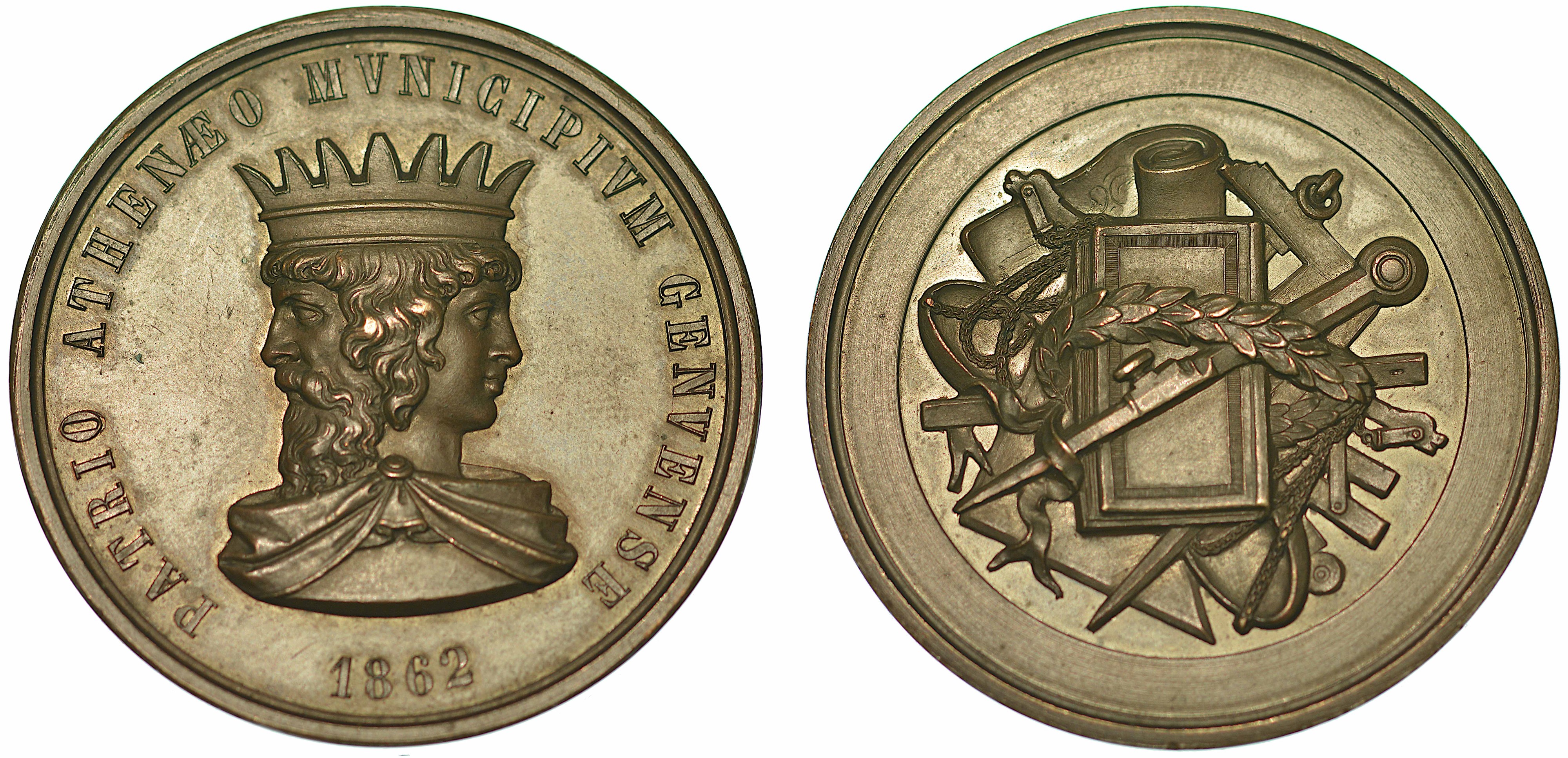 GENOVA. Ateneo municipale. Medaglia in bronzo 1862.
