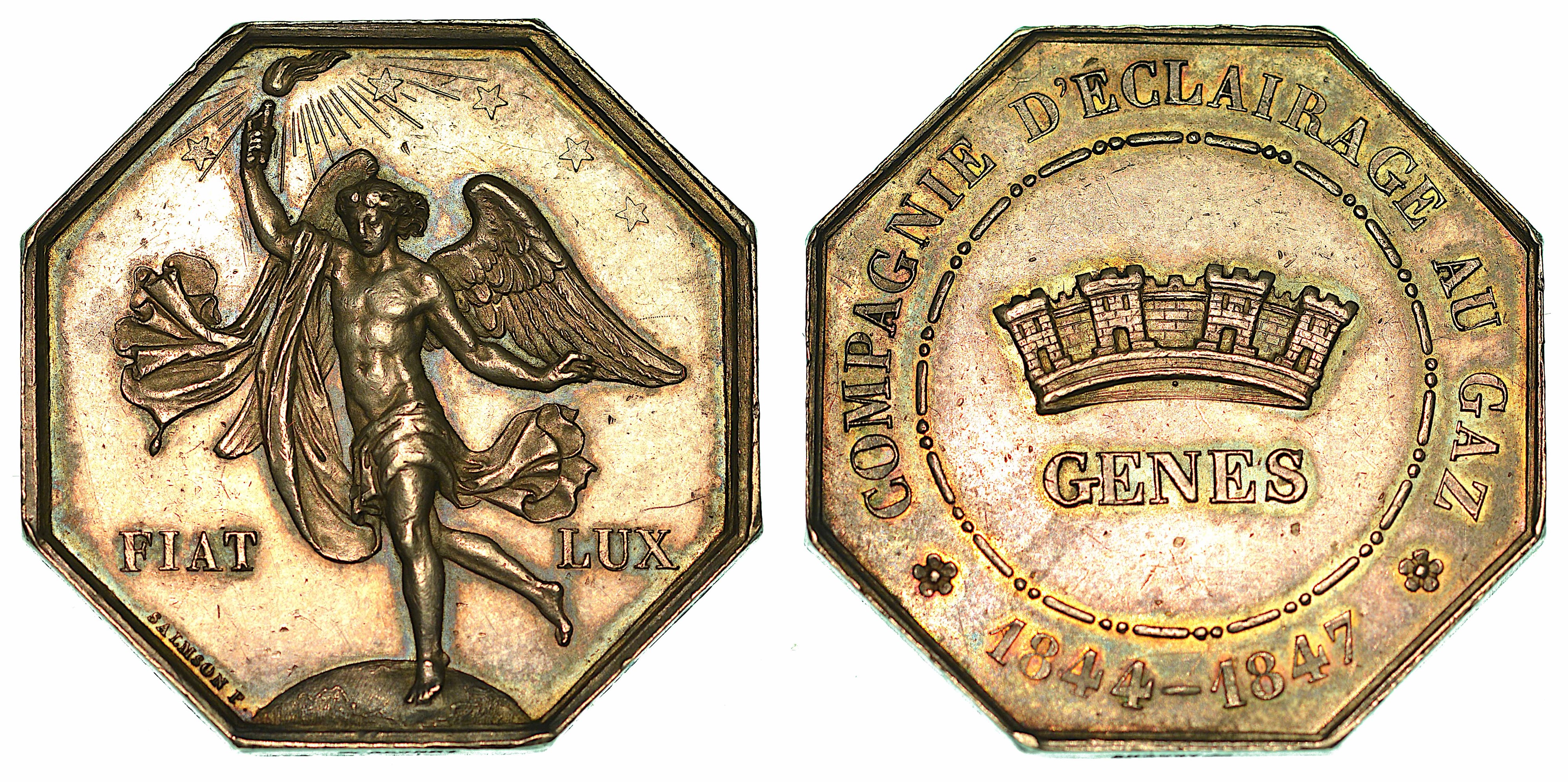 GENOVA. Durante Luigi Filippo I (Francia), Azienda illuminazione a gas. Gettone [..]