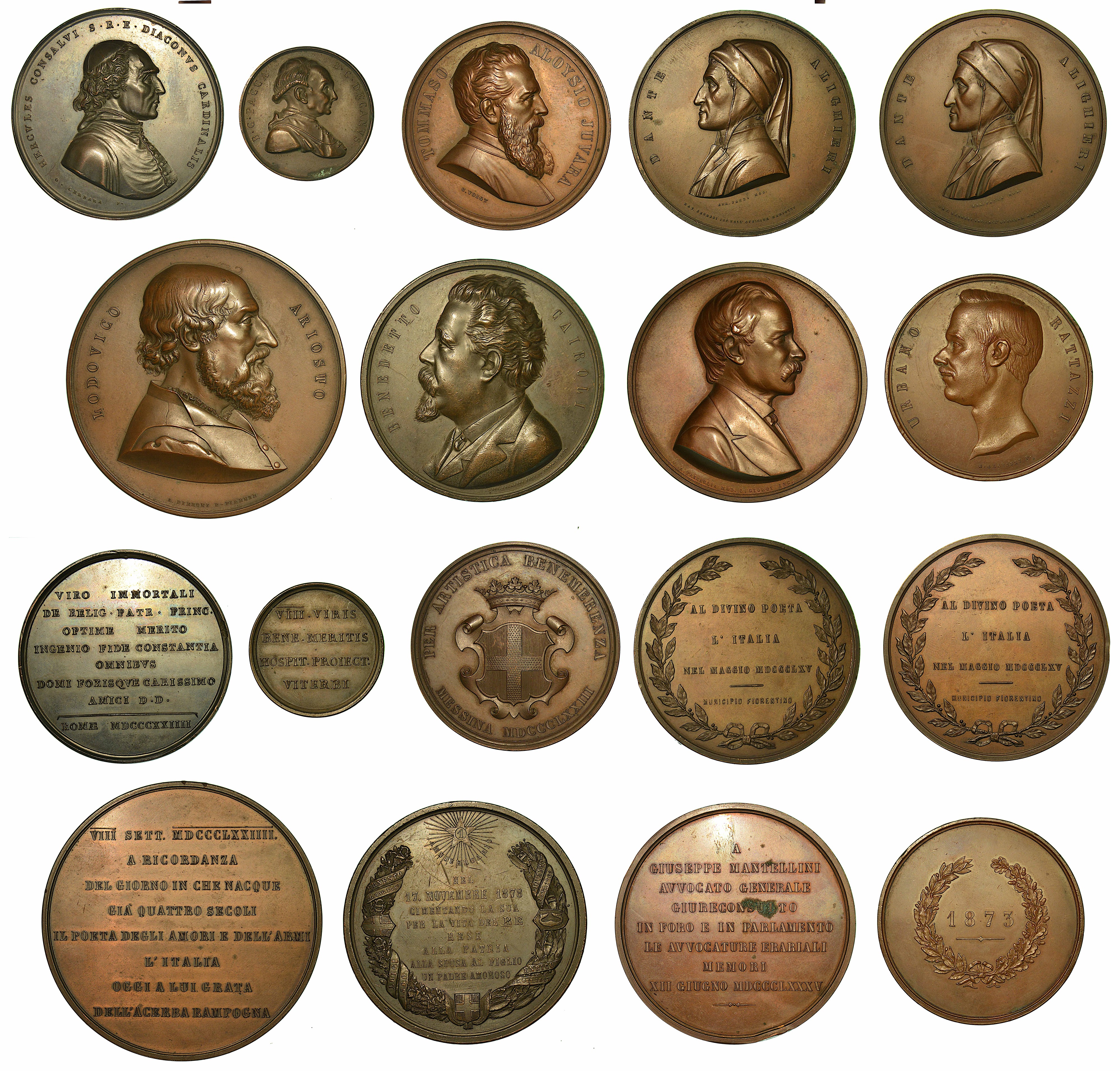 ITALIA. Lotto di nove medaglie in bronzo del 1800.