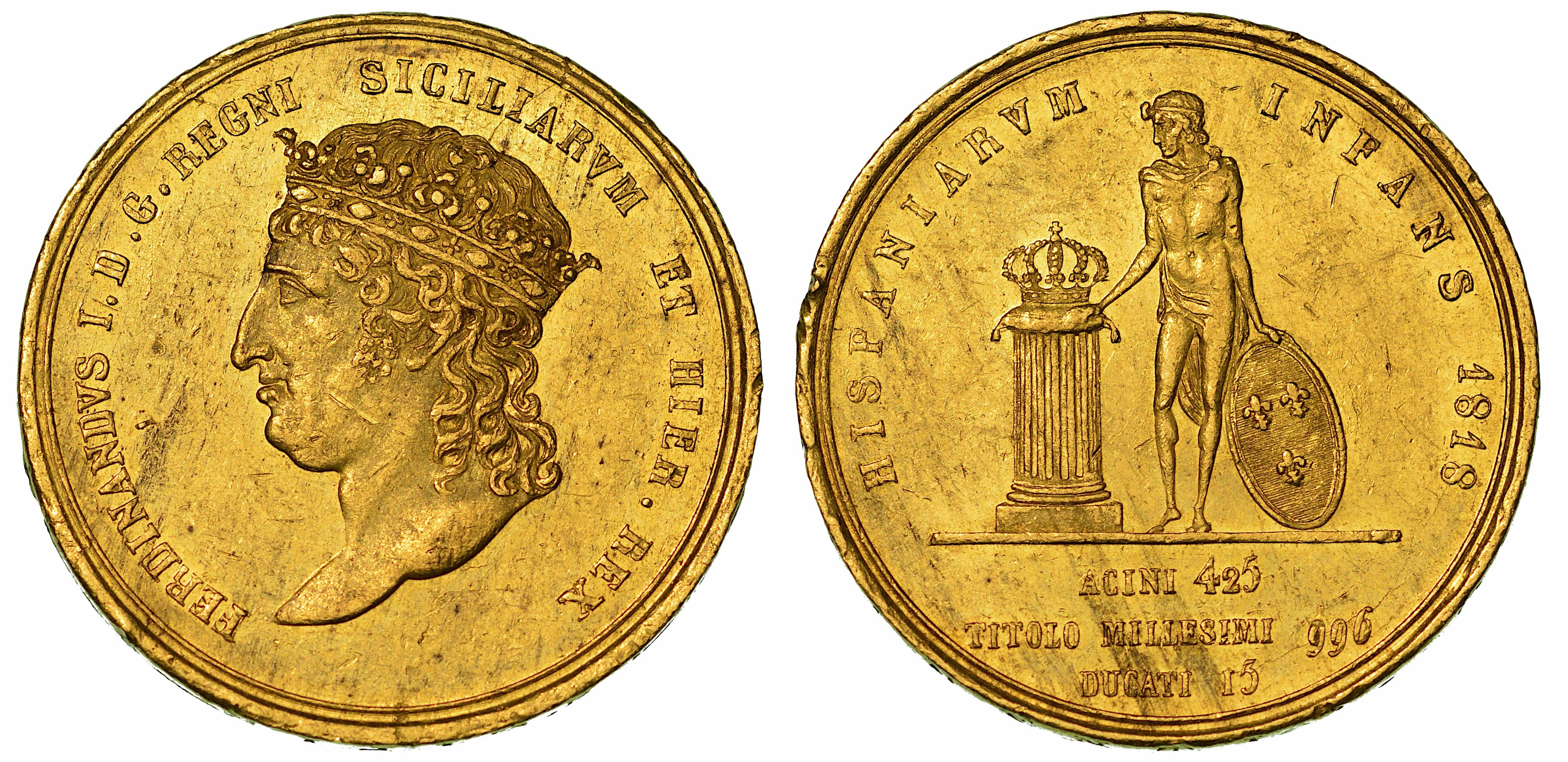 NAPOLI. FERDINANDO I DI BORBONE, 1816-1825. 15 Ducati 1818.