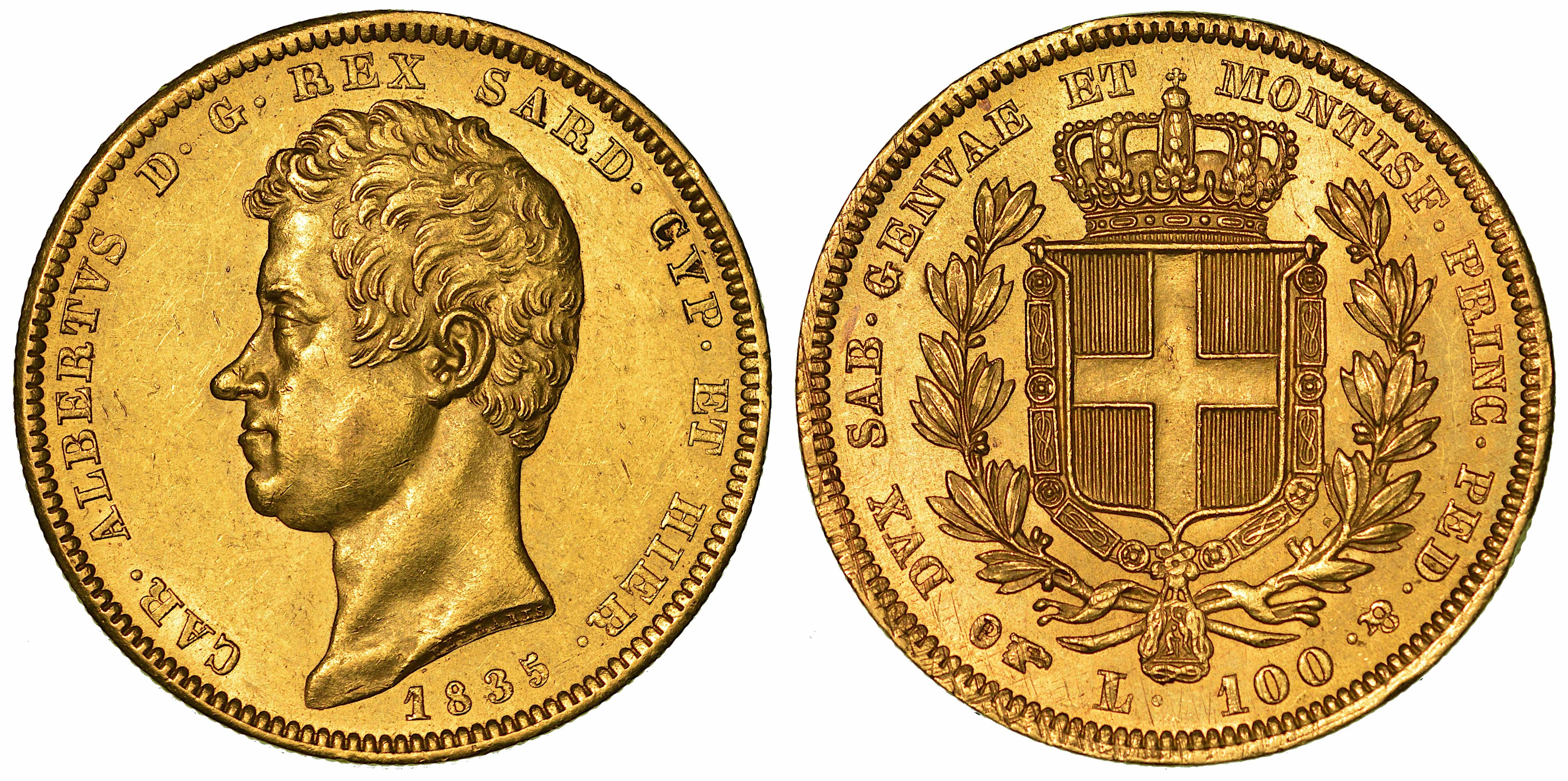 REGNO DI SARDEGNA. CARLO ALBERTO DI SAVOIA, 1831-1849. 100 Lire 1835. Torino.