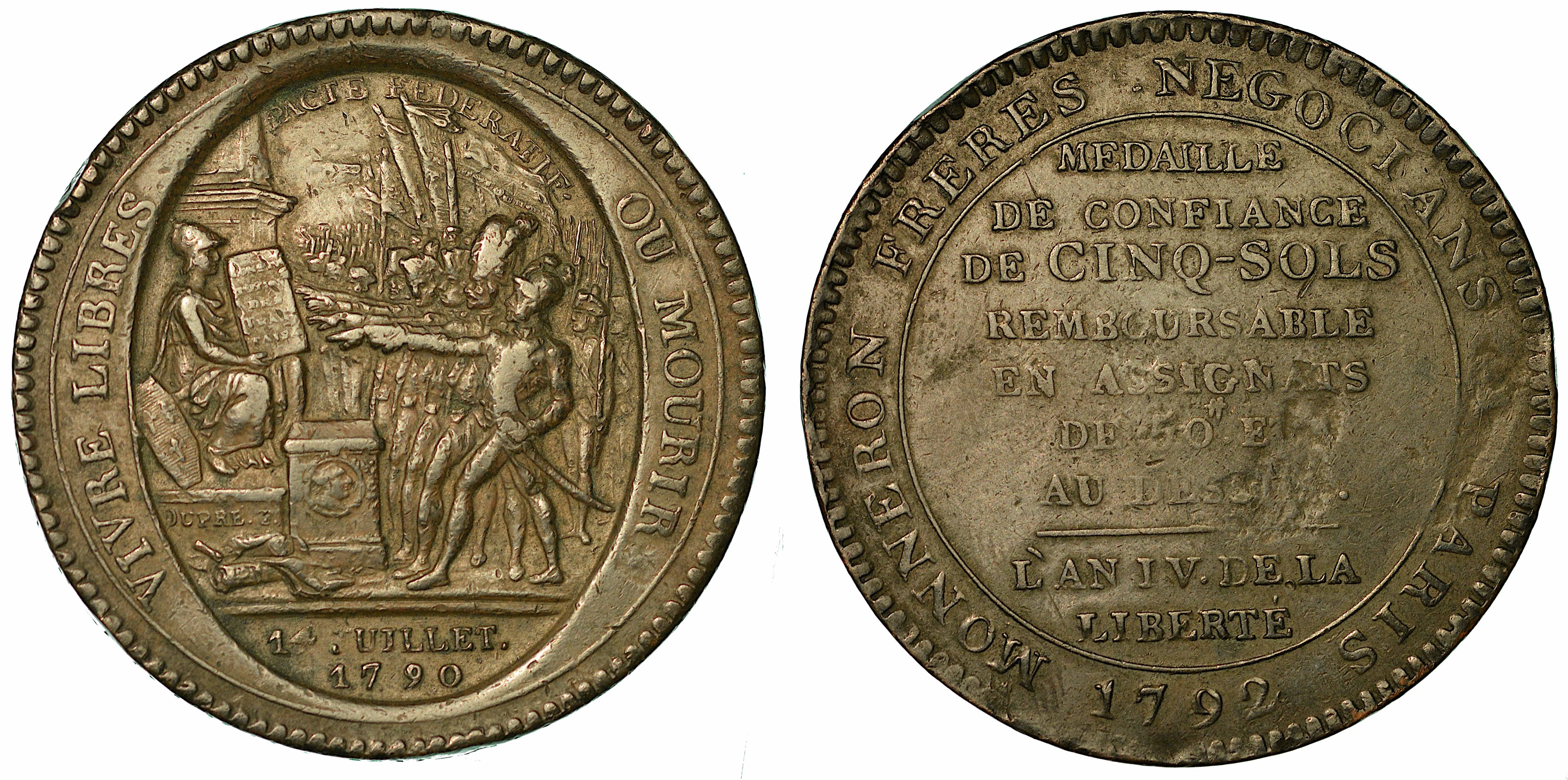 RIVOLUZIONE FRANCESE. Moneta-Medaglia fiduciaria da 5 soldi, Fratelli Monneron 1792. [..]