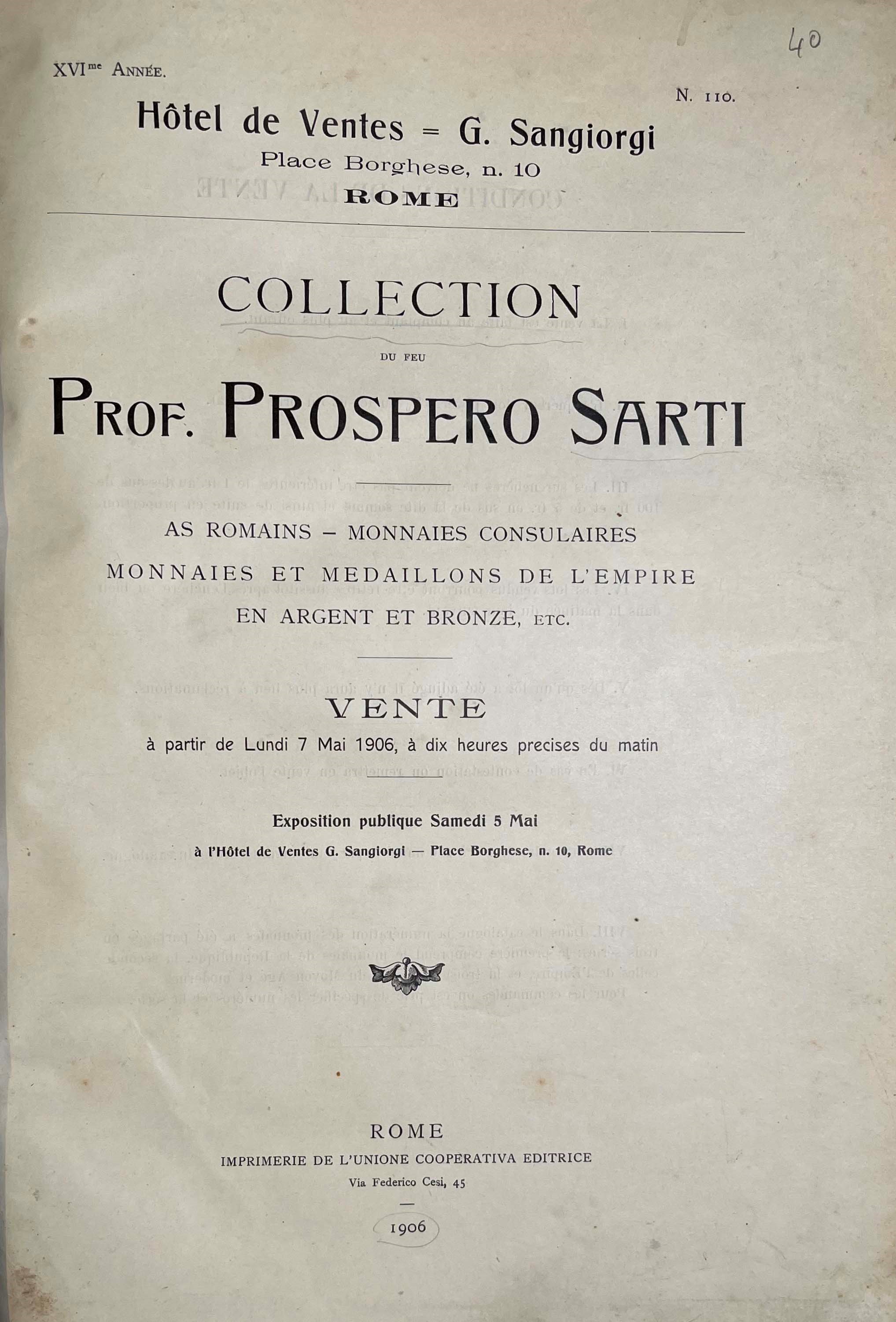 SANGIORGI G. Collection du feu Prof. PROSPERO SARTI. As romains, monnaies consulaires, [..]